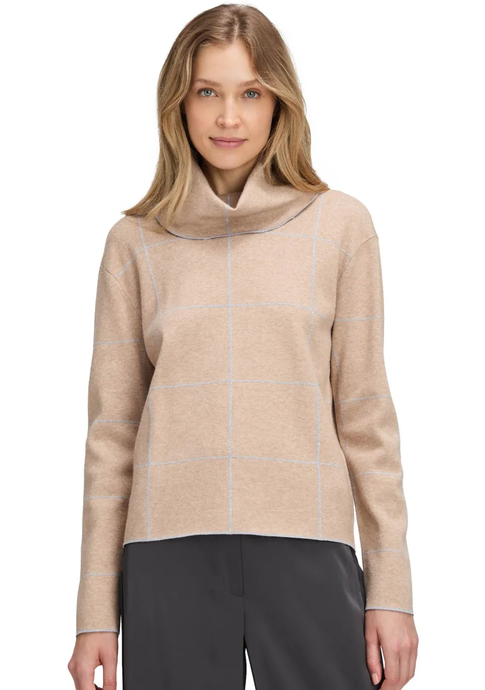 – Het model is 1.76m lang en draagt maat 38