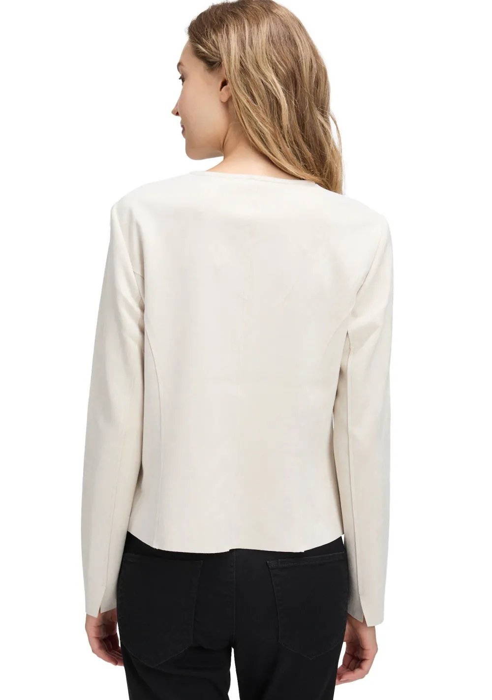 – Het model is 1.76m lang en draagt maat 38