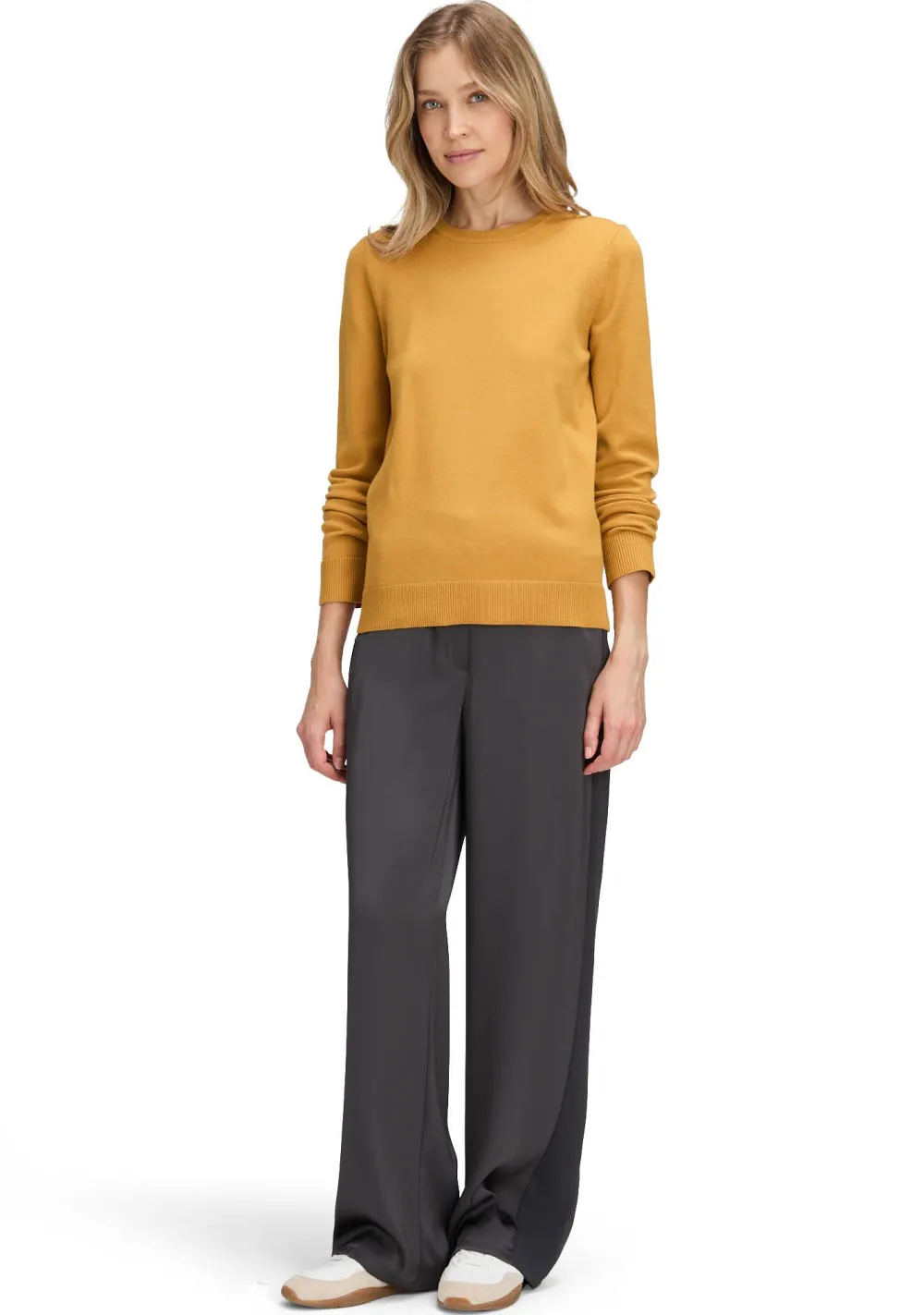 – Het model is 1.76m lang en draagt maat 36