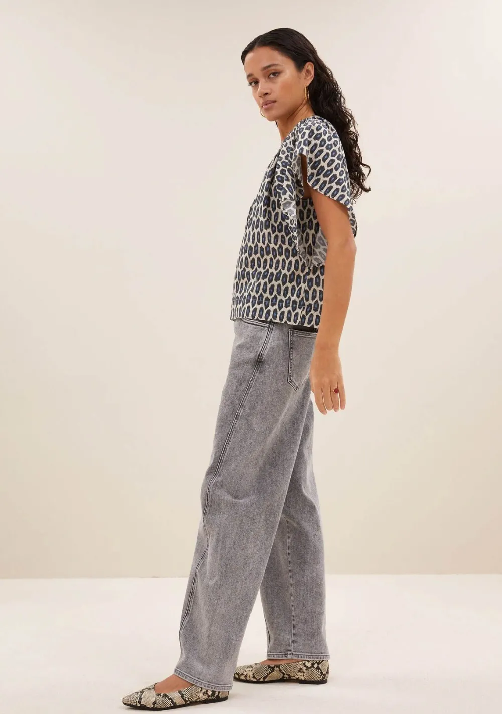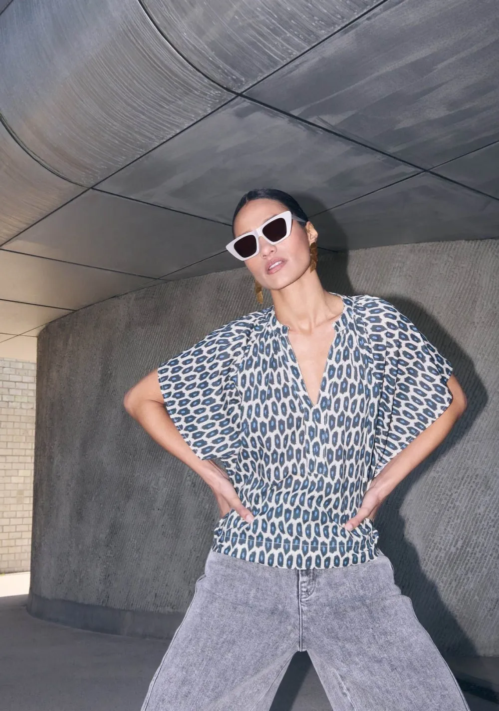 – Het model is 1.75m lang en draagt maat S