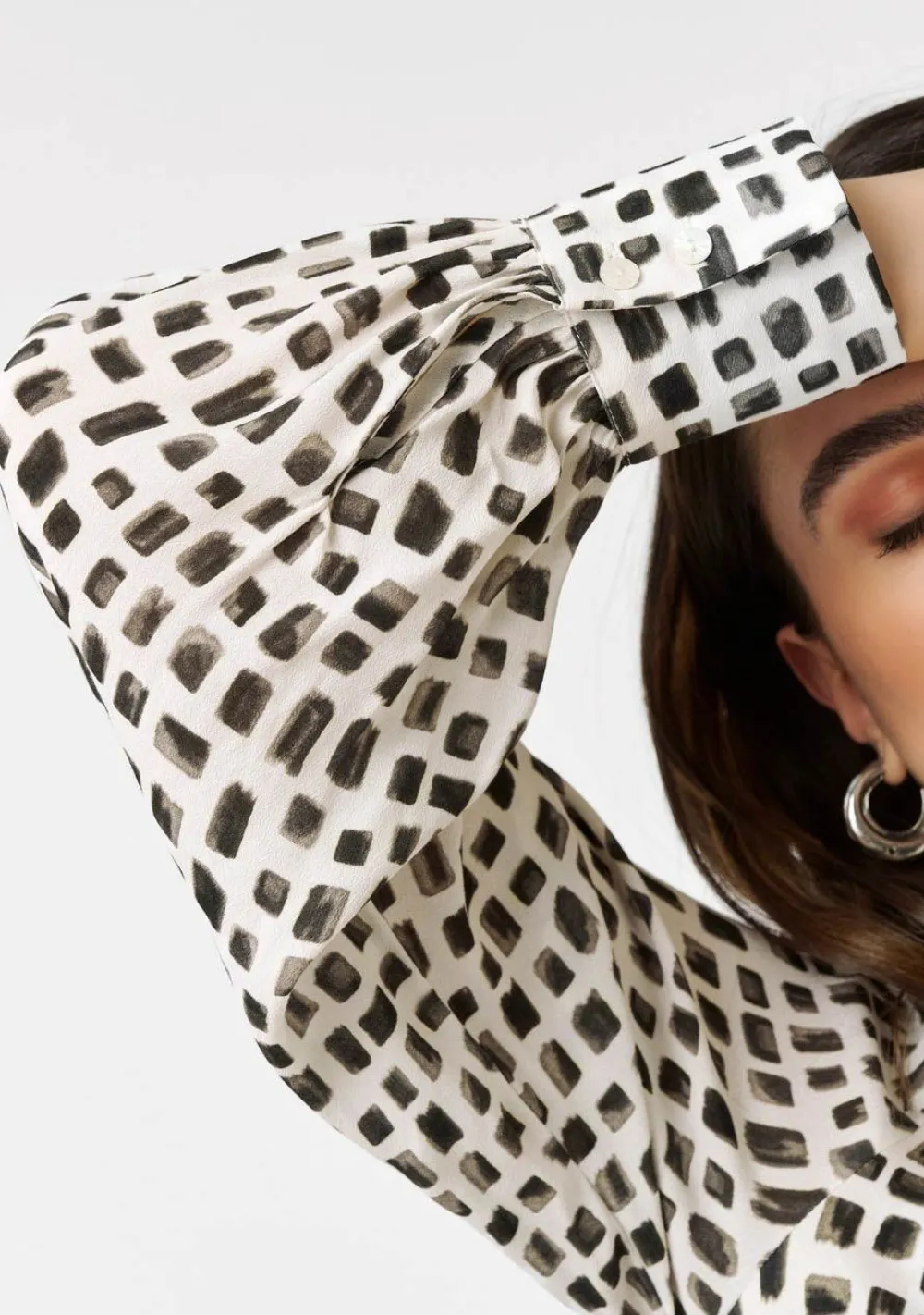– Het model is 1.76m lang en draagt maat 36