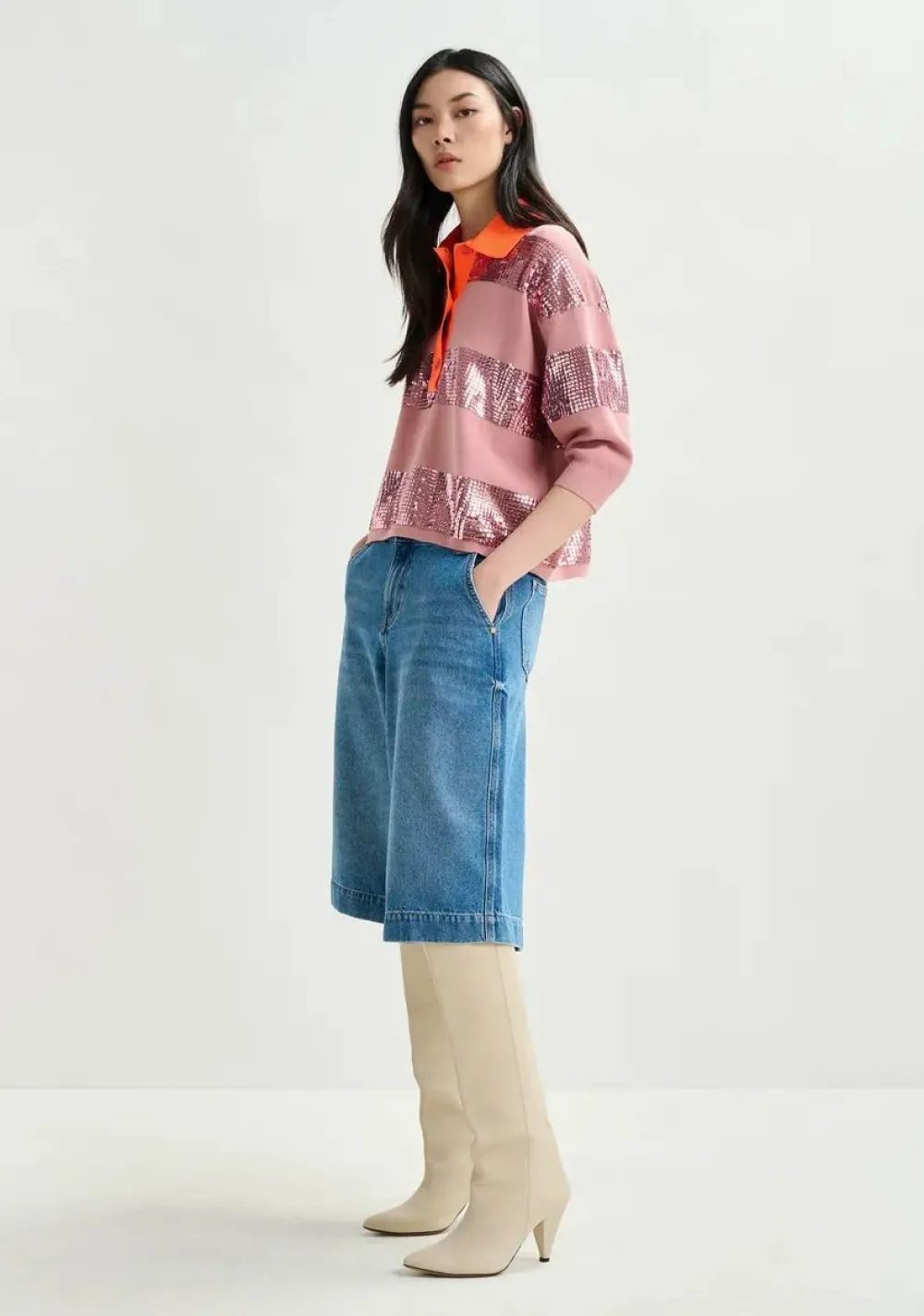 – Het model is 1.77m lang en draagt maat 27