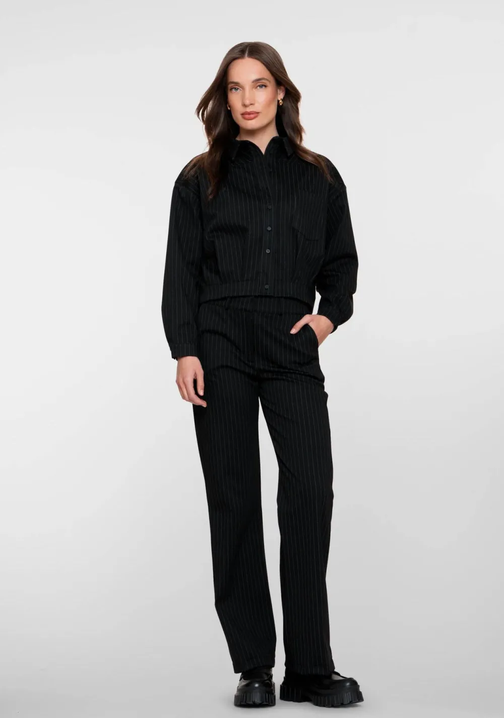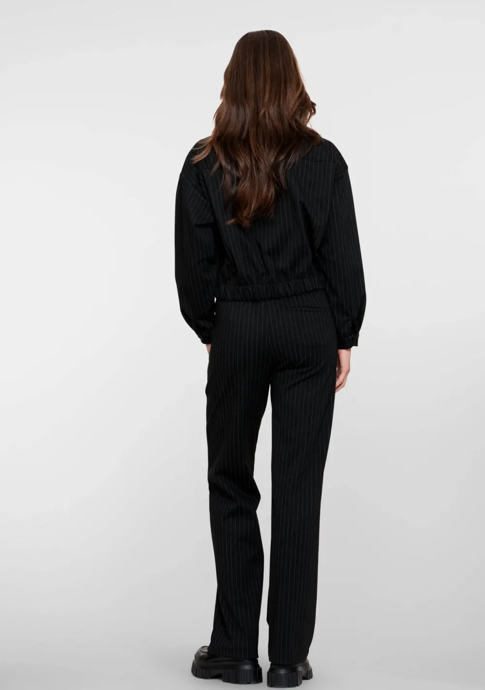 – Het model is 1.76m lang en draagt maat S