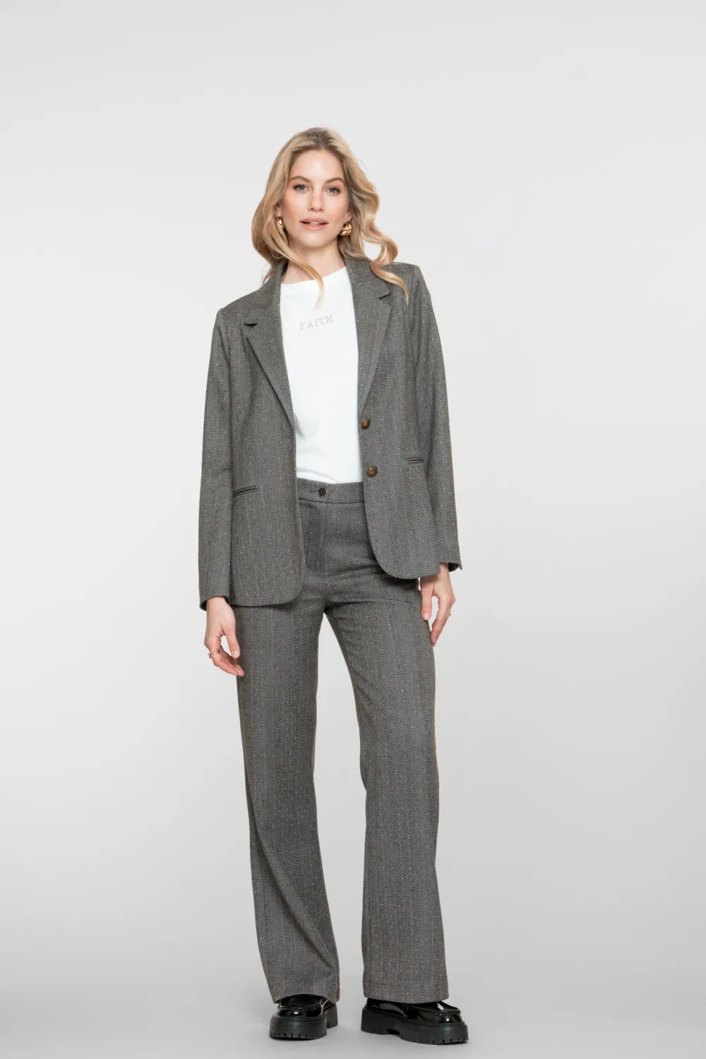 – Pantalon voorzien van steekzakken en afgewerkt met steentjes