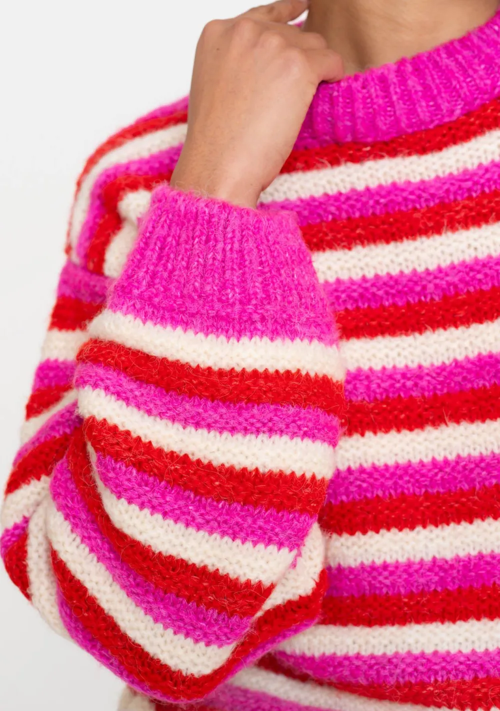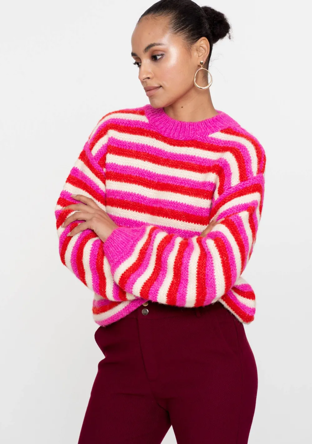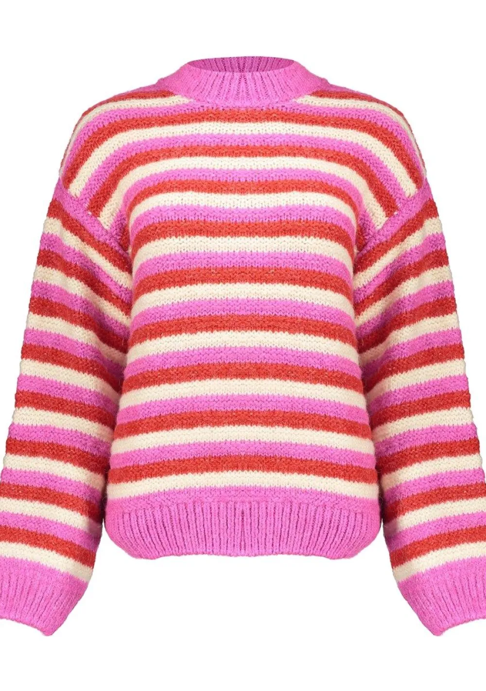 – Pullover loose knit stripes is voorzien van een ronde hals