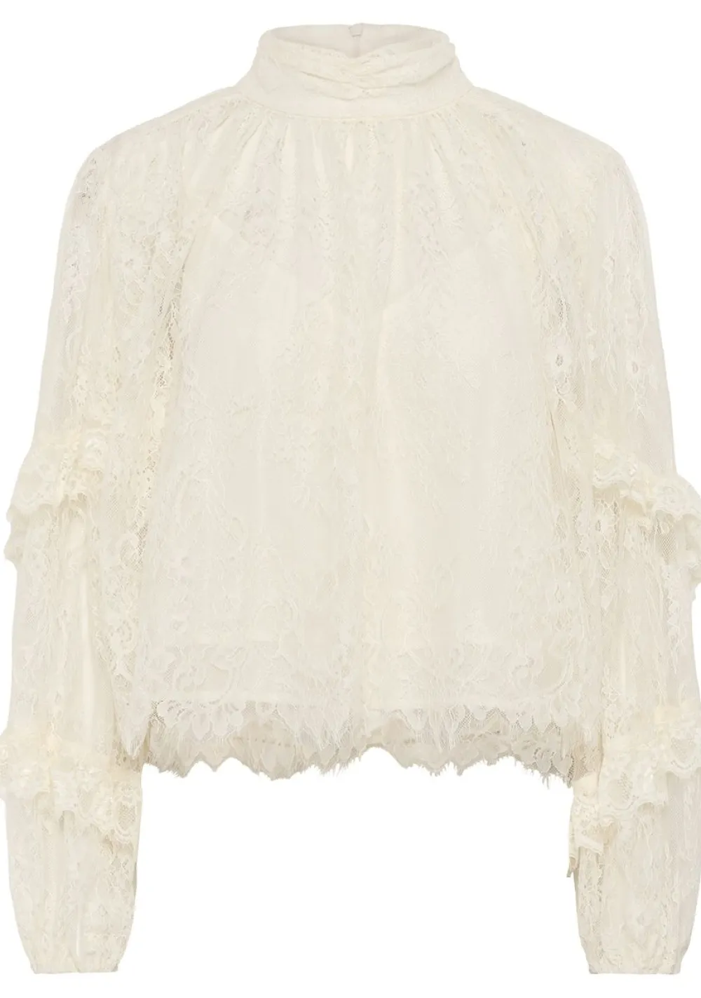 – Blouse gemaakt van kant is voorzien van een ruffle detail bij de mouwen