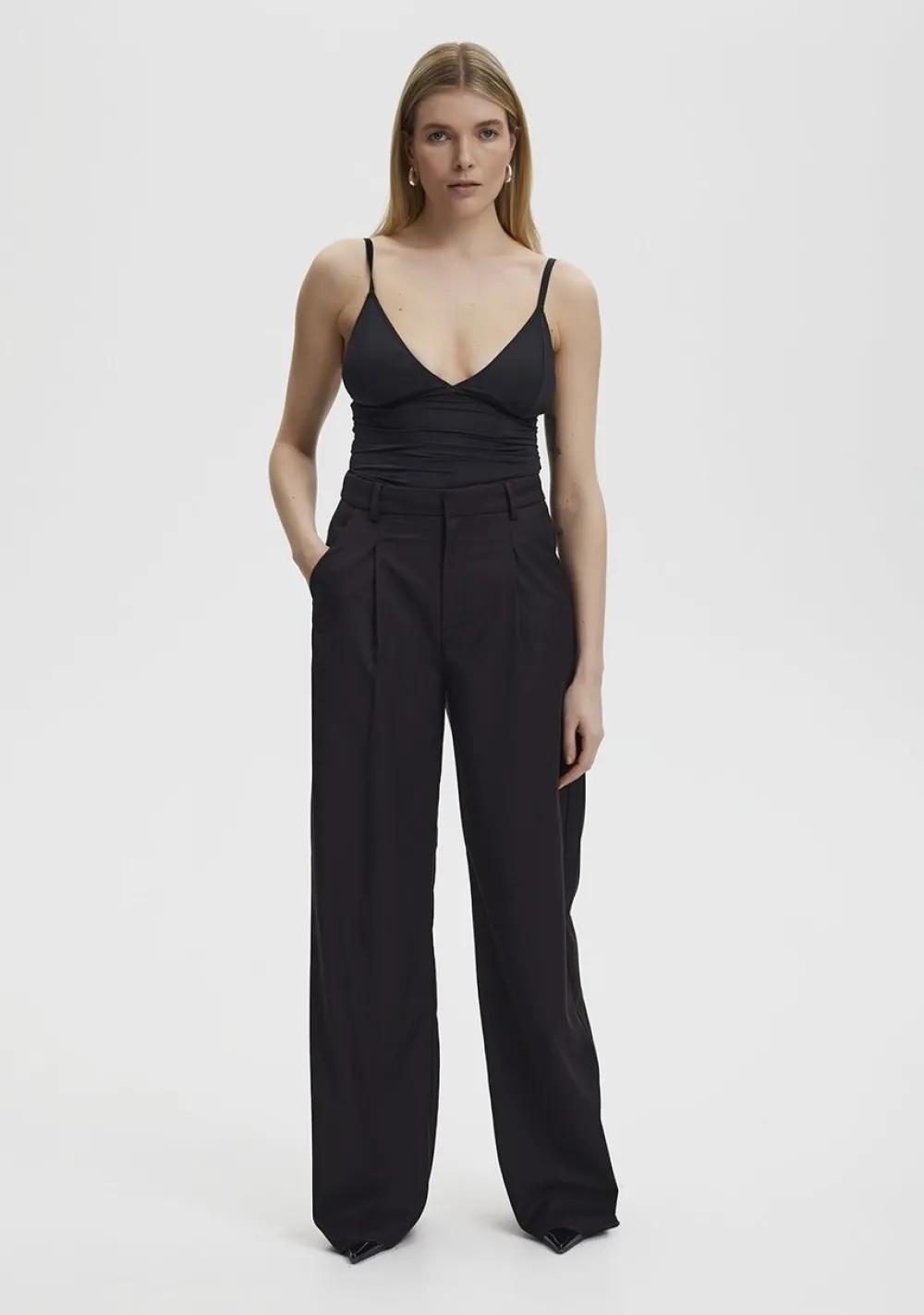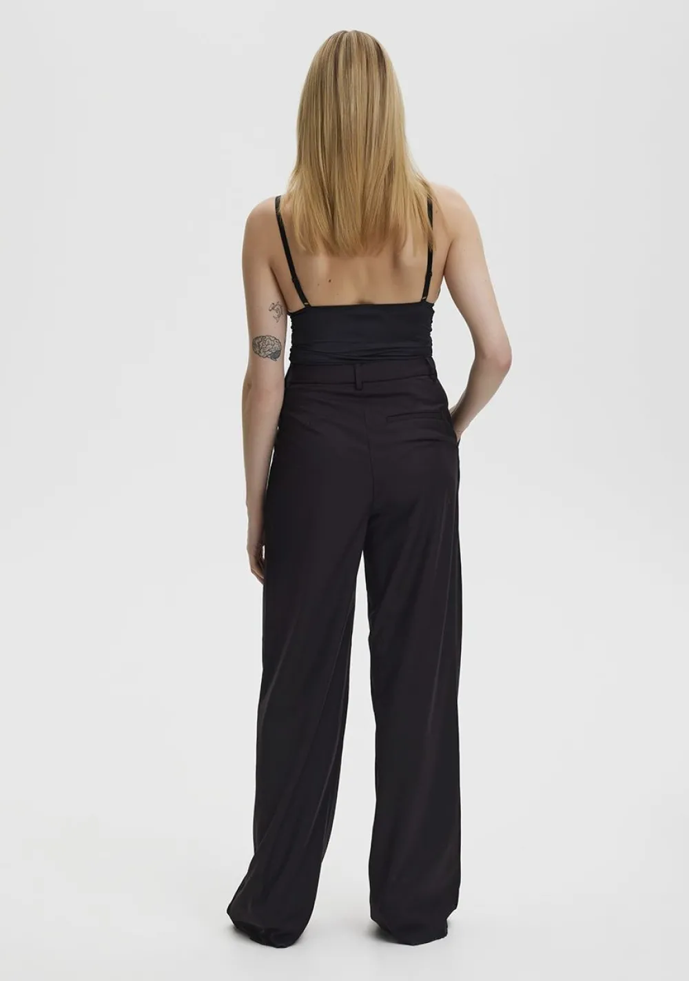 – Het model is 1.76m lang en draagt maat S