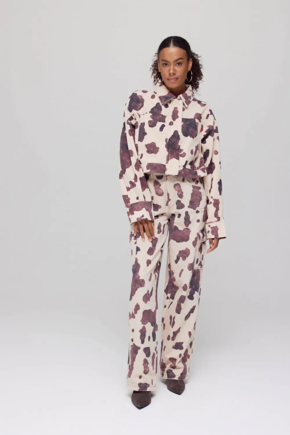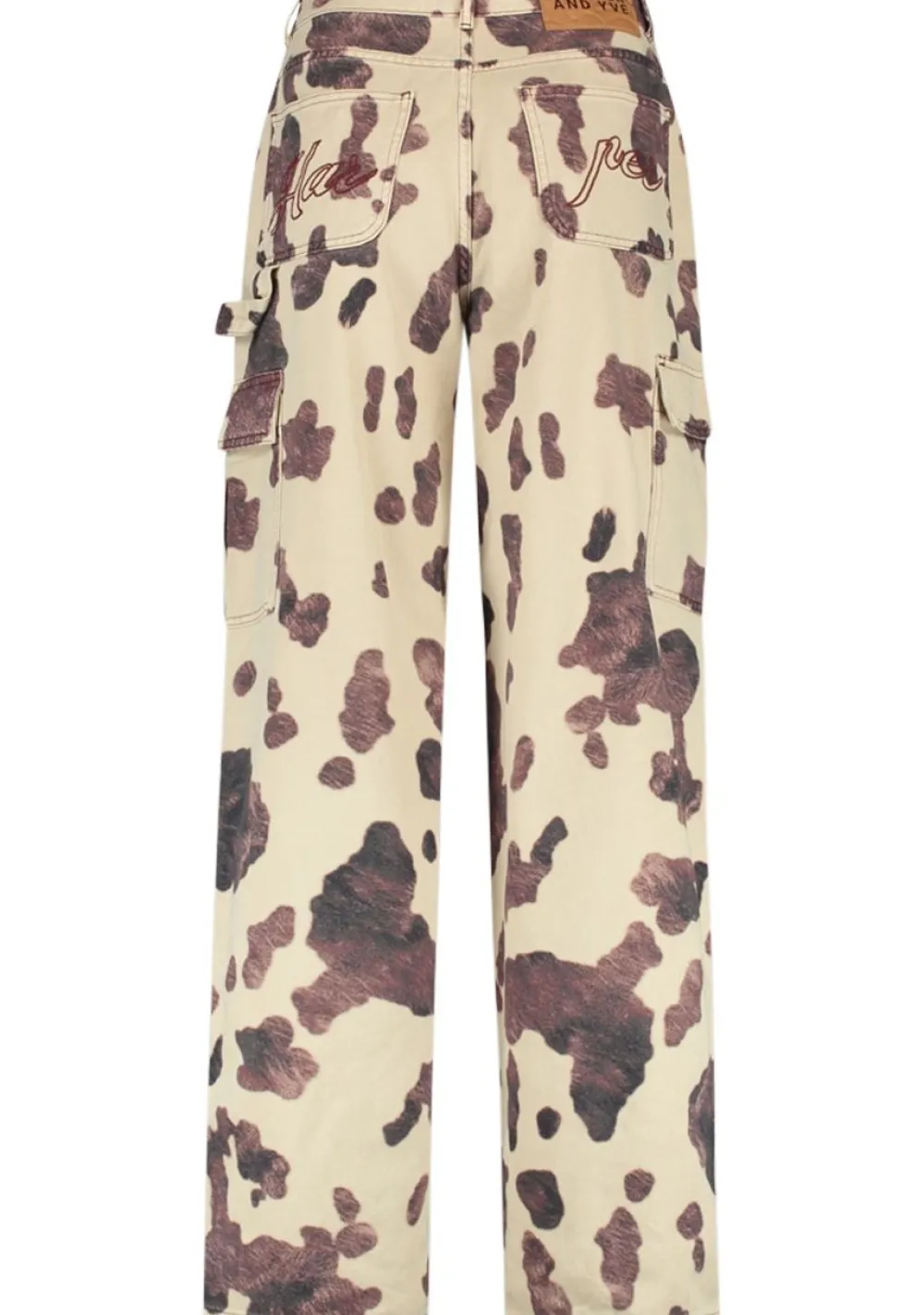 -DANA-PA voorzien van diverse zakken. De cargo broek heeft een all-over koeien dessin voor een trendy statement