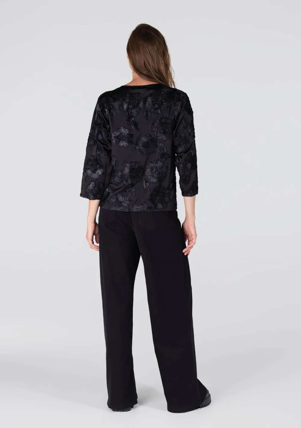 – INDI BLOUSE afgewerkt met een speels bloemen reliëf