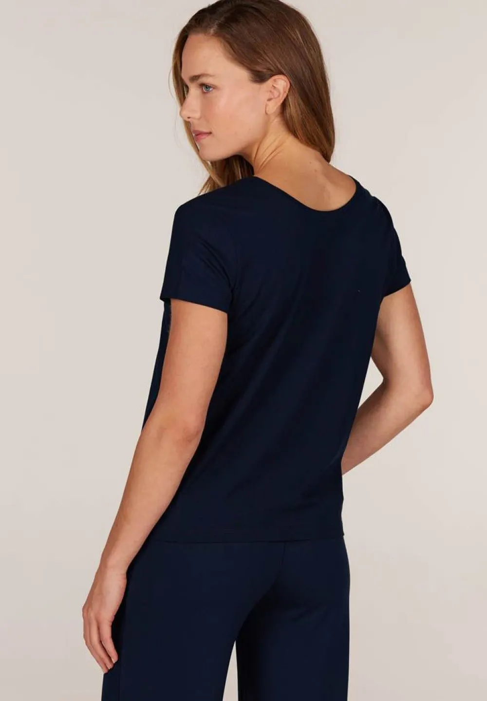 – Het model is 1.76 m lang en draagt maat S