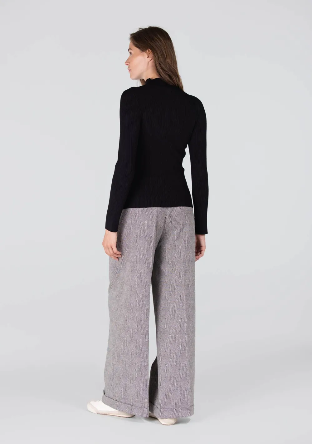 – Het model is 1.78m lang en draagt maat 36