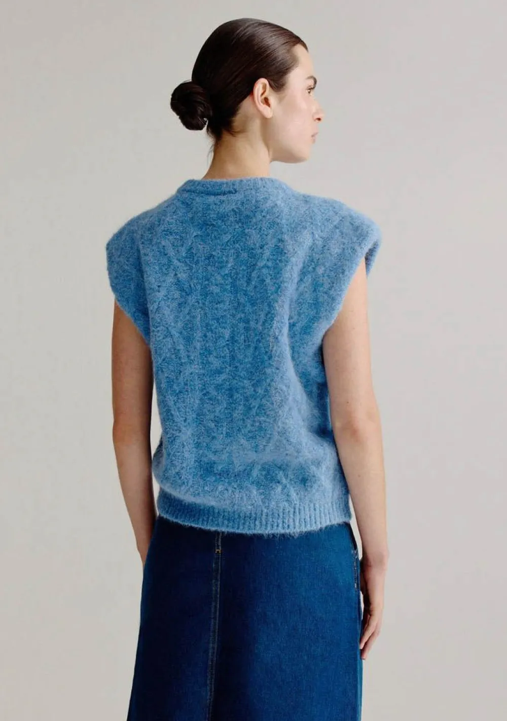 – Het model is 1.78m lang en draagt maat S