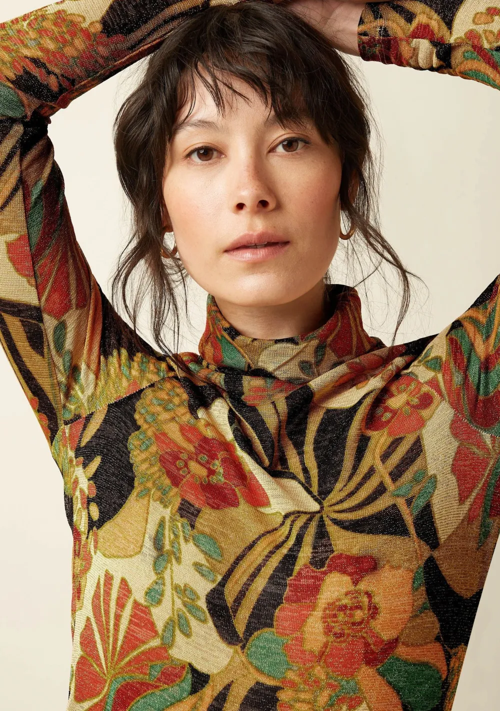 – Het model is 1.76m lang en draagt maat S