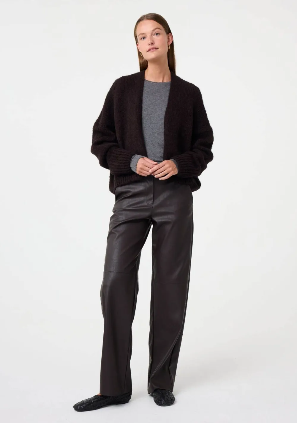 – Het model is 1.76m lang en draagt maat S