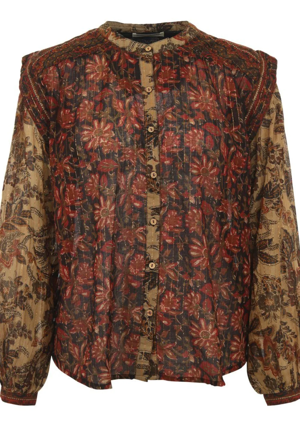 – Blouse afgewerkt met ballon mouwen en een gestreept glitter detail.