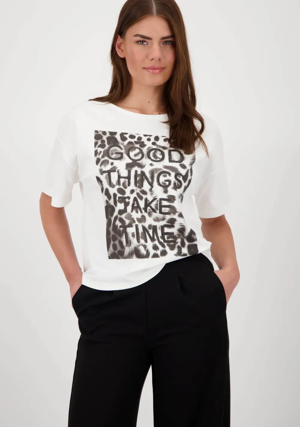 – Het model is 1.76m lang en draagt maat 36