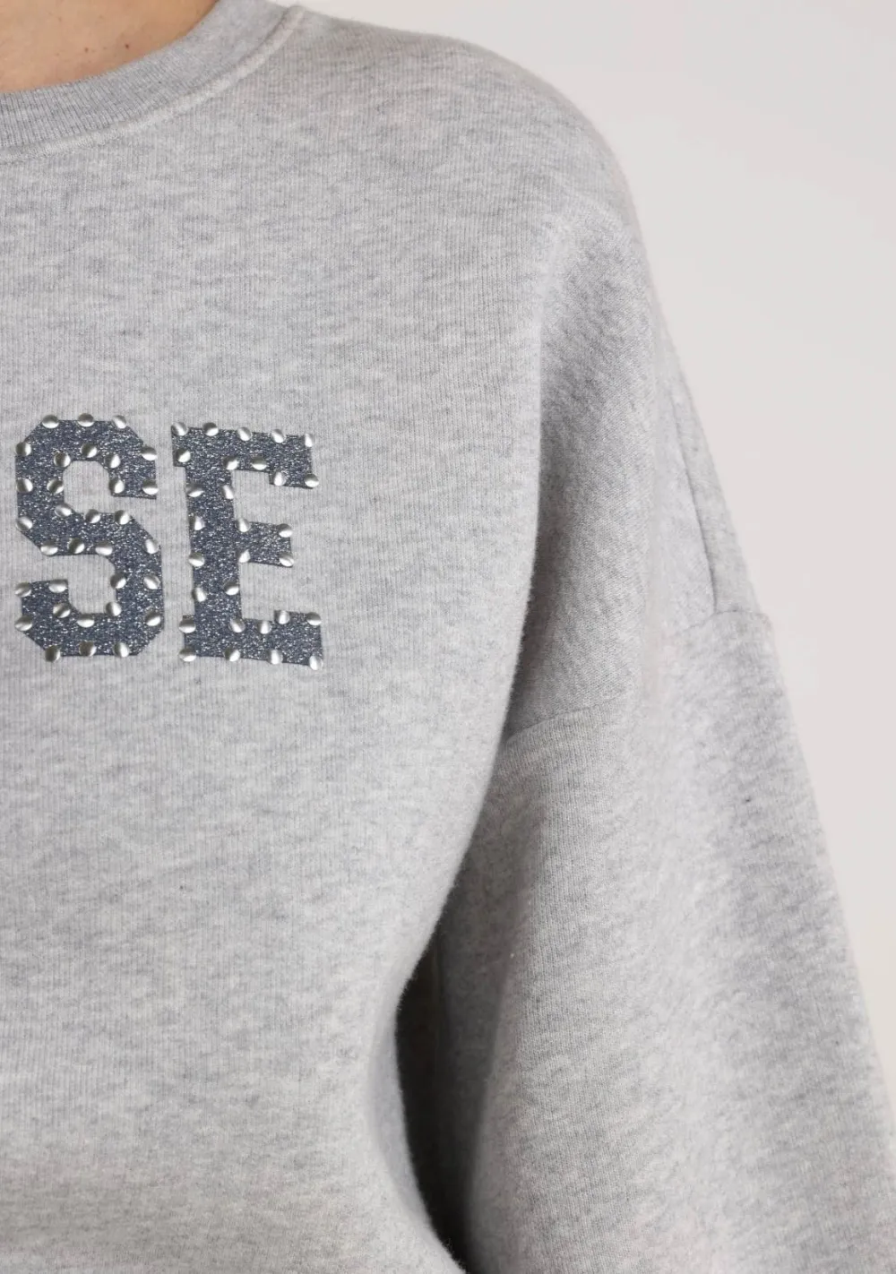 – Het model is 1.76m lang en draagt maat S