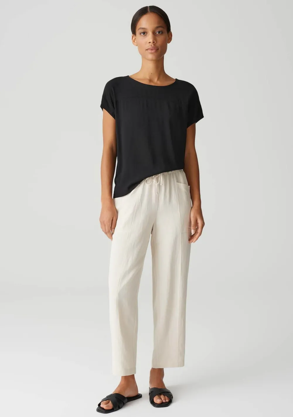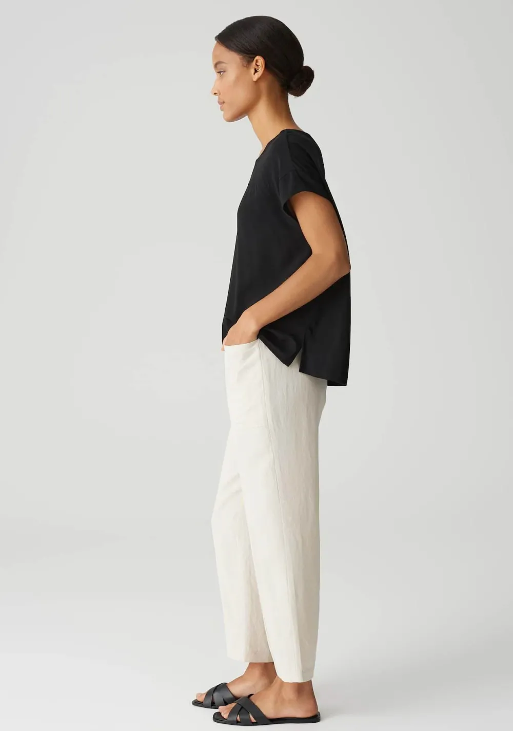– Het model is 1.74m lang en draagt maat 36