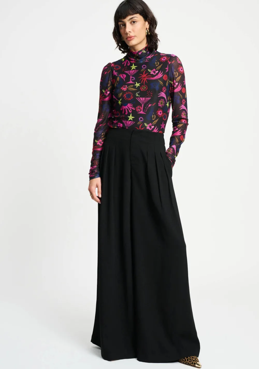 – Het model is 1.76m lang en draagt maat 36