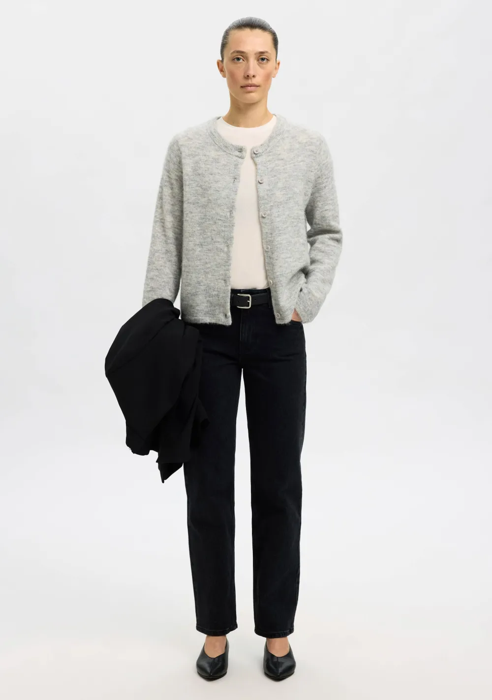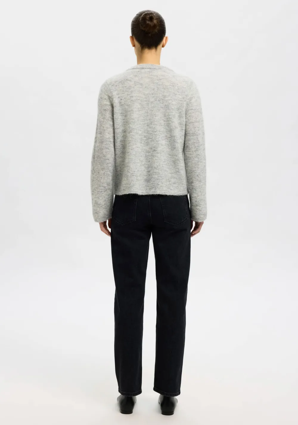 – Het model is 1.76m lang en draagt maat S