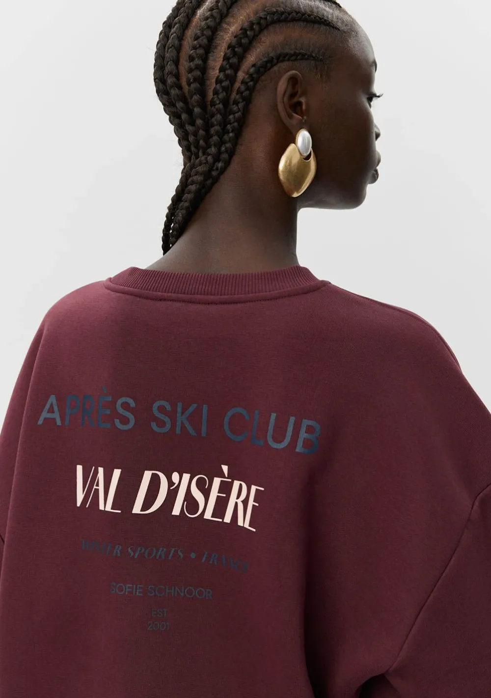 – Het model is 1.76m lang en draagt maat S