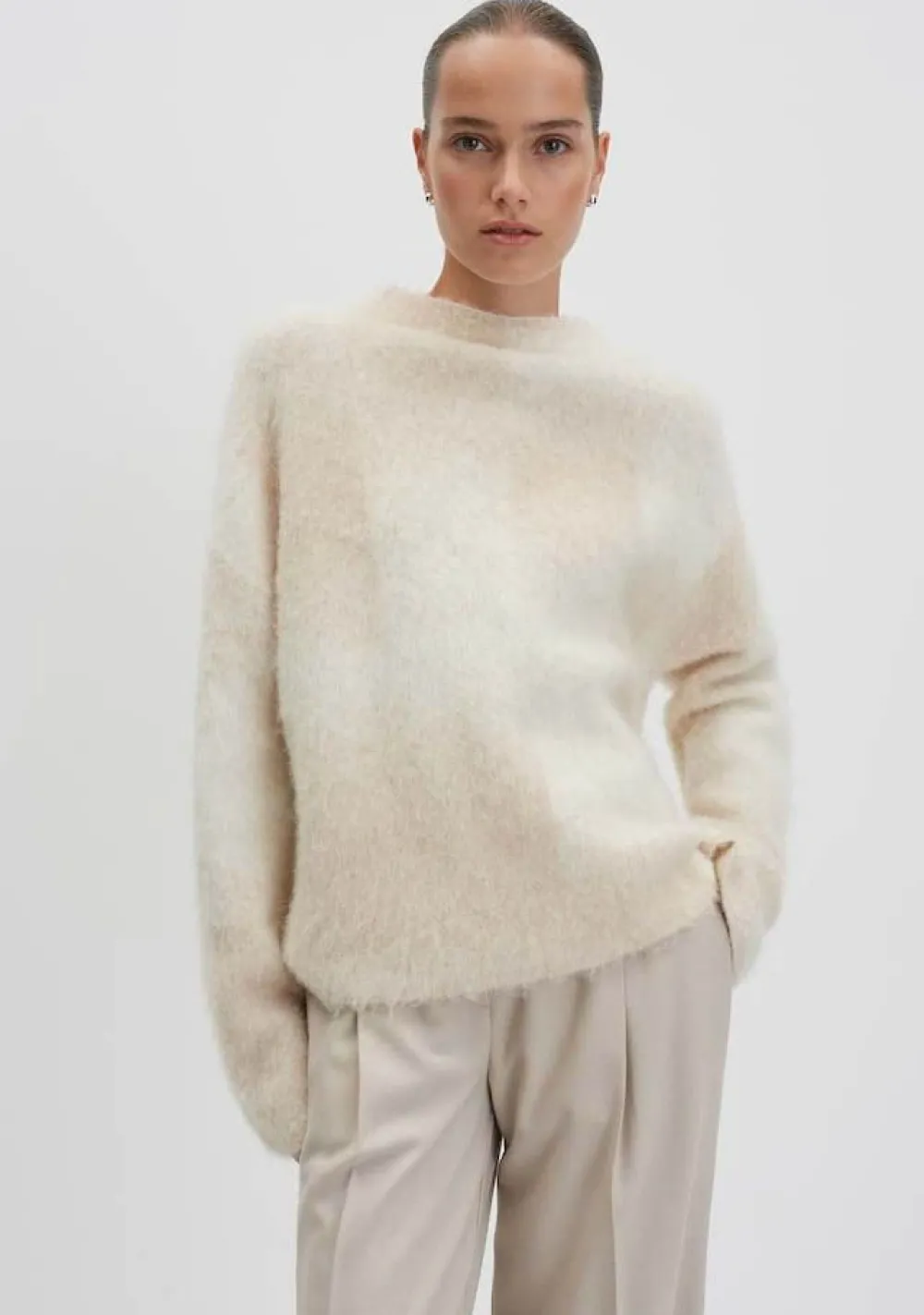 – Het model is 1.76m lang en draagt maat S