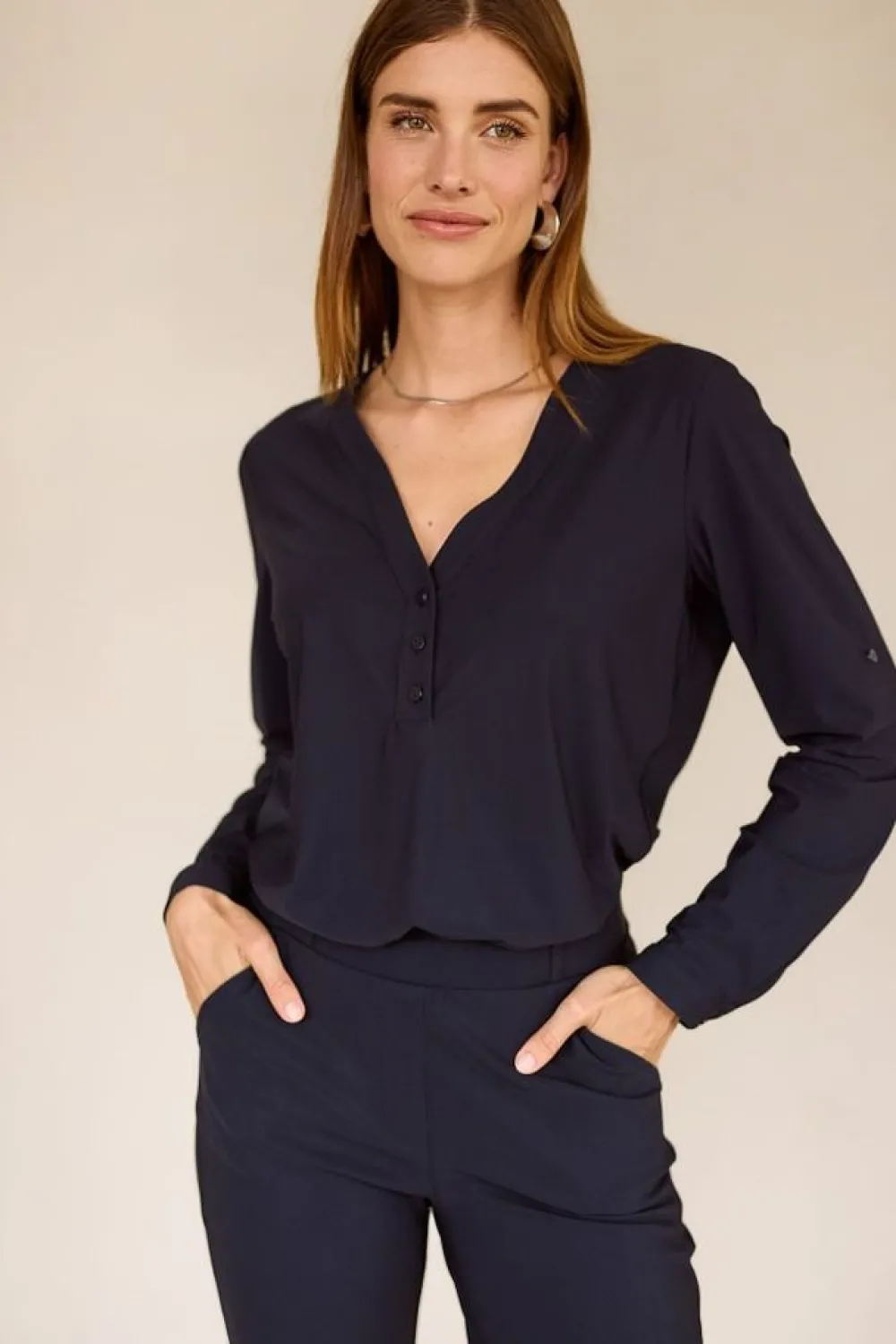 De Evi Blouse in travel kwaliteit is een tijdloos item dat je moeiteloos kunt stijlen. Voor een zakelijke look draag je hem met een pantalon en blazer, terwijl je met een jeans en sneakers juist een meer casual uitstraling creëert. Dankzij de effen kleur vormt deze blouse een perfecte basis voor allerlei outfits en stijlen.