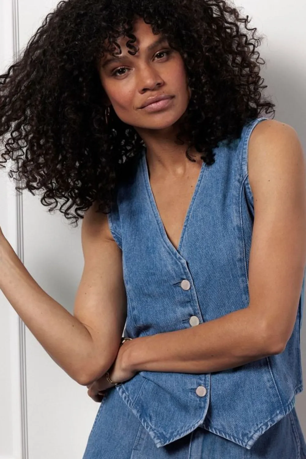 – Gizel denim gilet is afgewerkt met een knoopsluiting