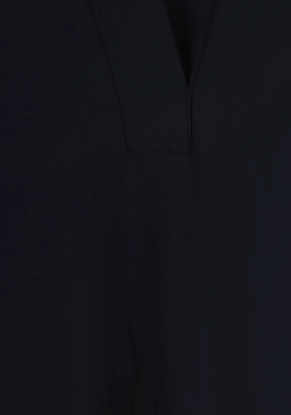 De losvallende pasvorm en V-hals geven de jurk een subtiele, vrouwelijke uitstraling. Met een lengte van 96 cm vanaf de schouder is deze jurk kort, maar stijlvol en veelzijdig te combineren.