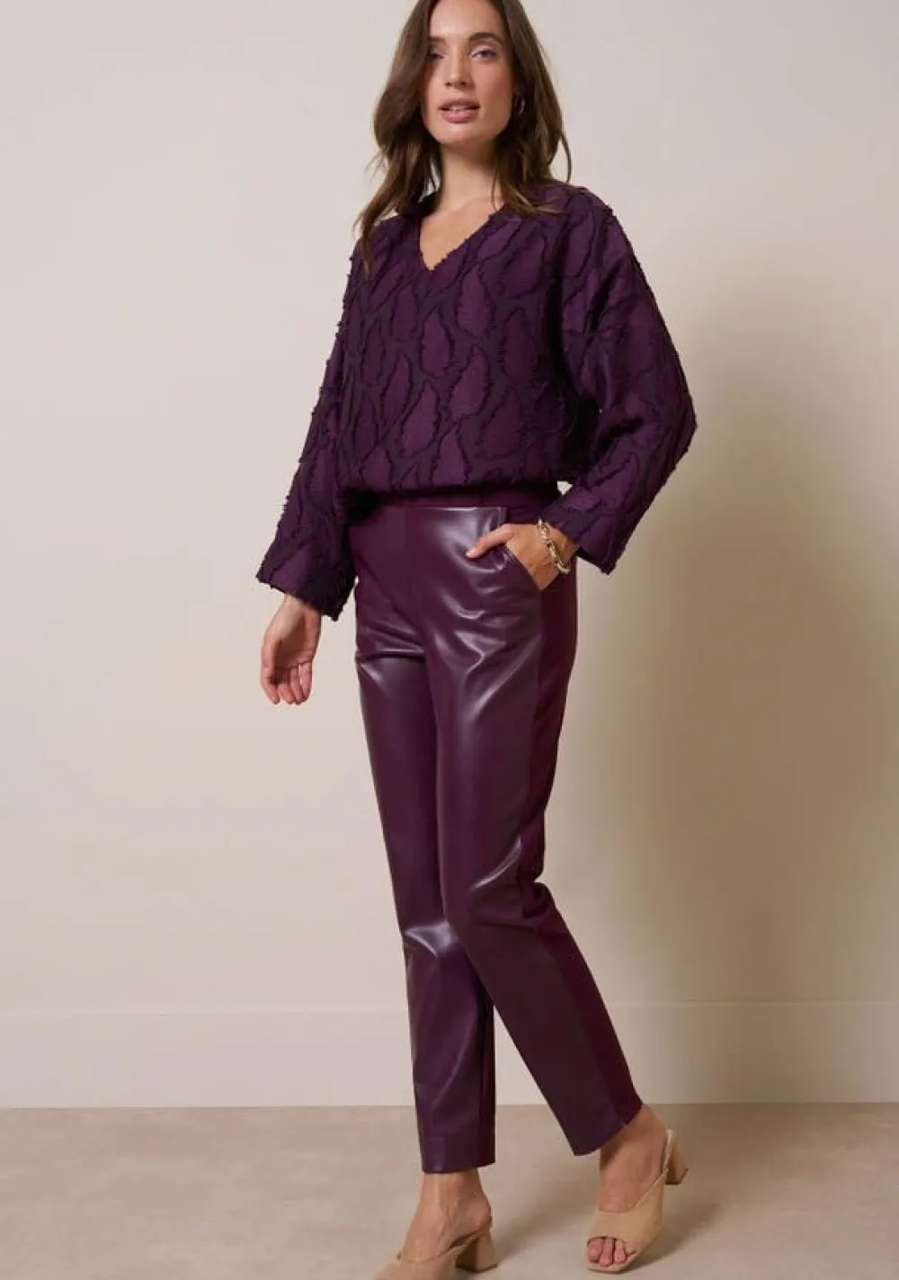 – Anne faux leather trousers voorzien van steekzakken en riemlussen