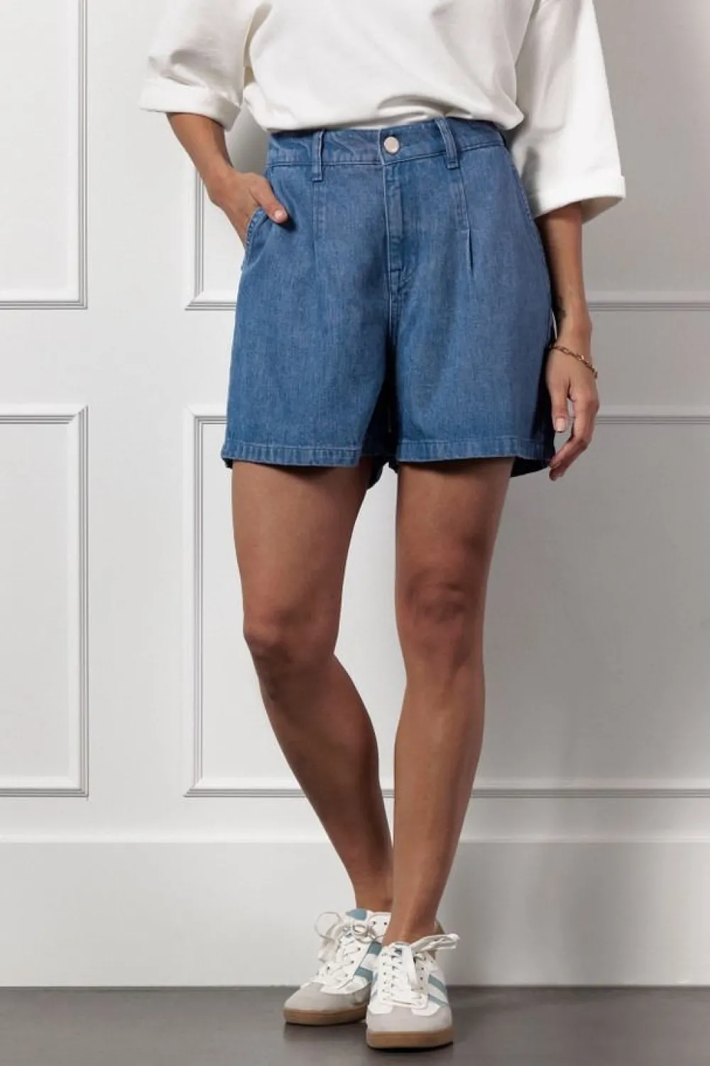 – Shanna denim short voorzien van steekzakken en riemlussen in de taille