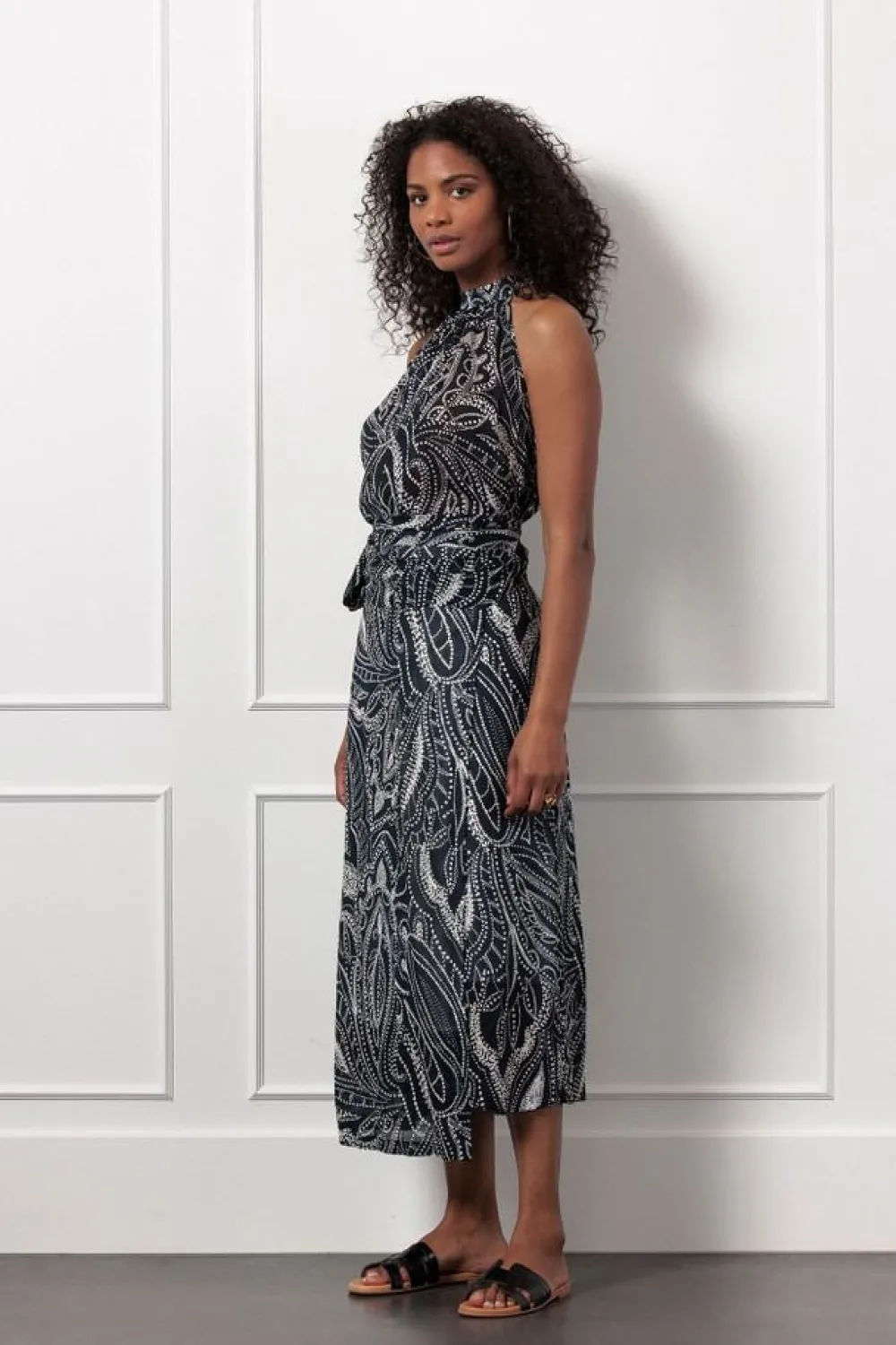 – Het model is 1.75m lang en draagt maat S