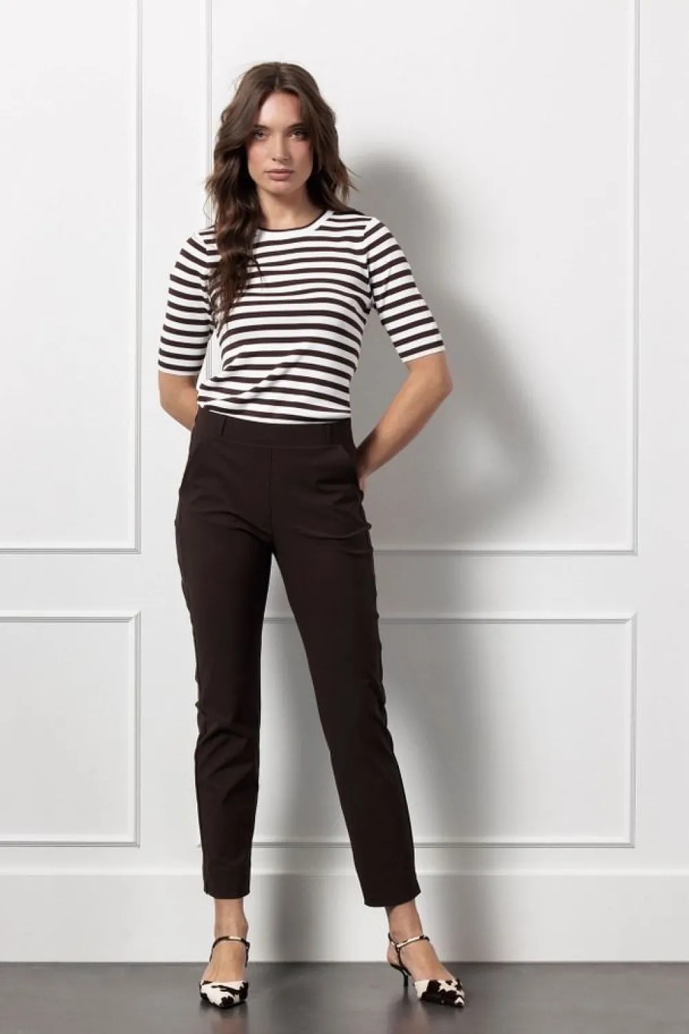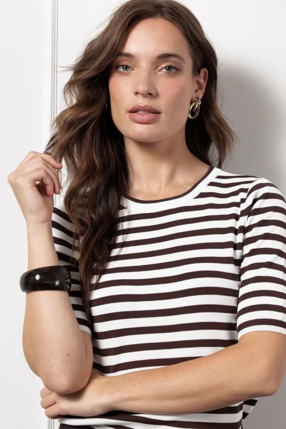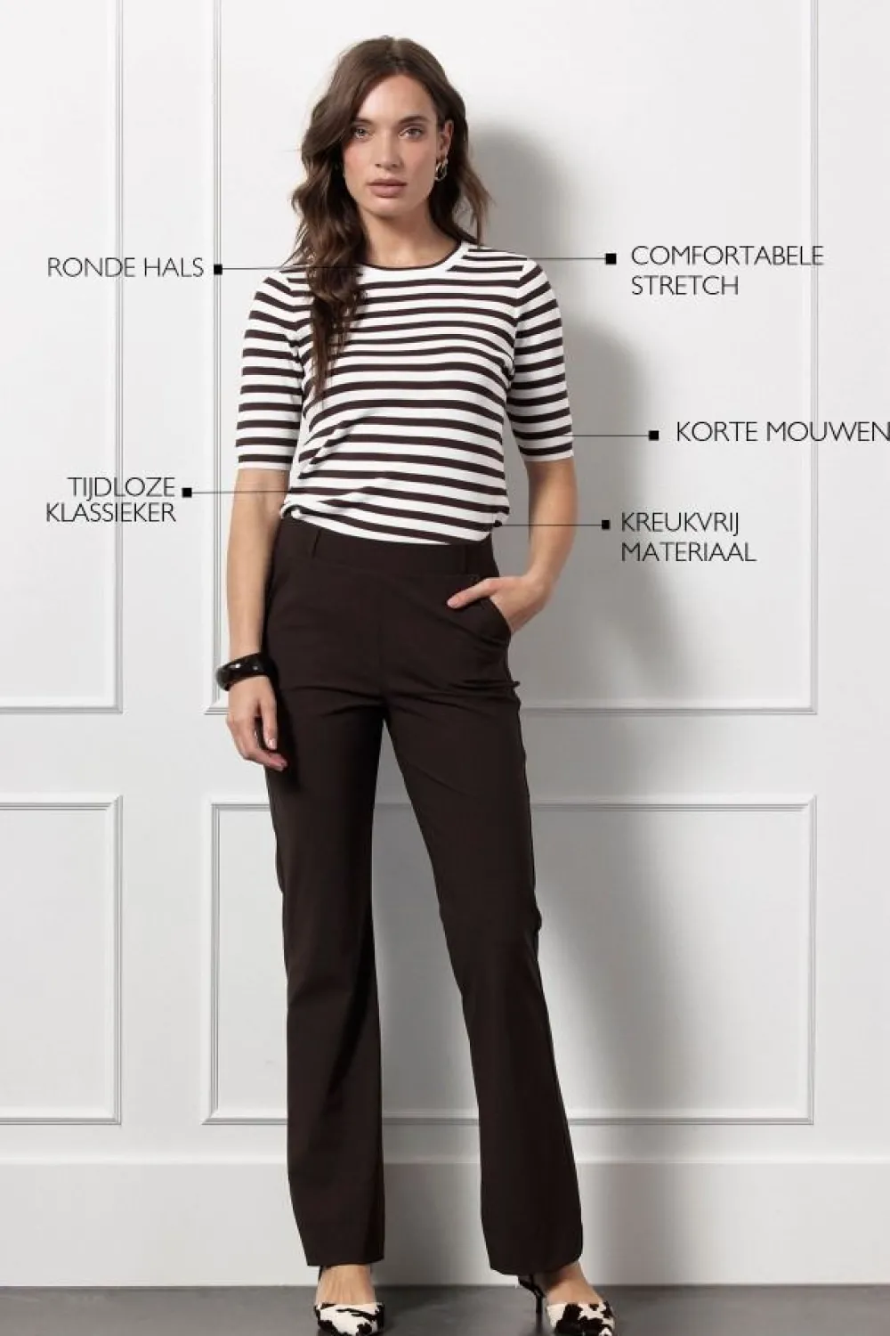 – Het model is 1.76m lang en draagt maat S
