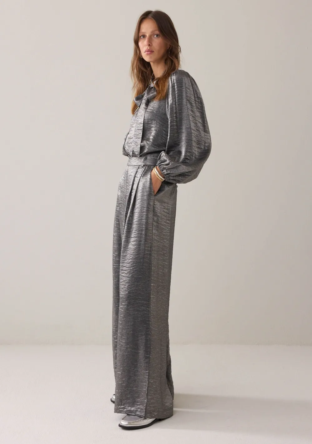 – De Blouse Metallic shine is voorzien van een speels strik detail en ballon mouwen