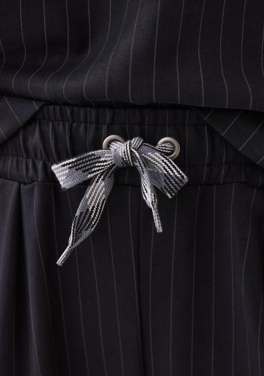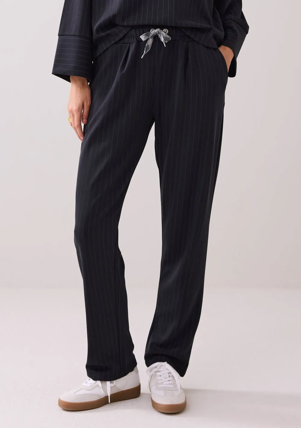 – Tapered scuba pinstripe broek is voorzien van steekzakken