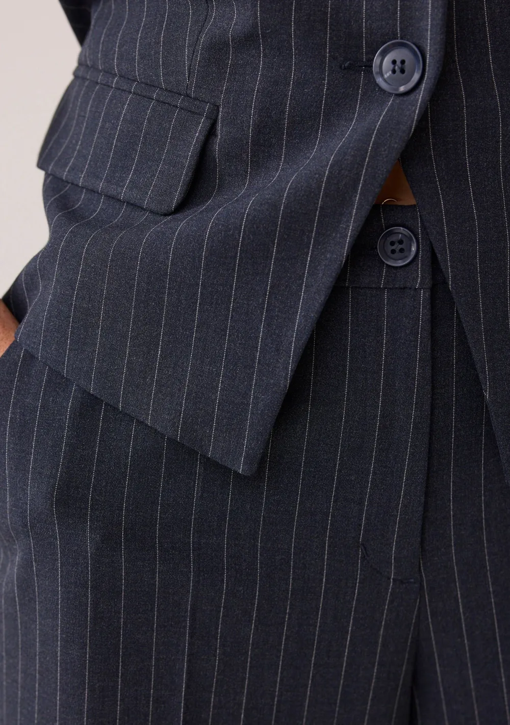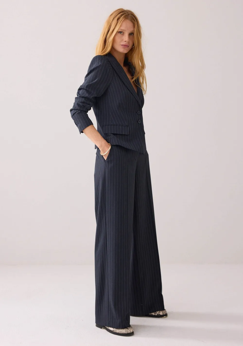 – Trousers wide leg Pinstripe is voorzien van steekzakken