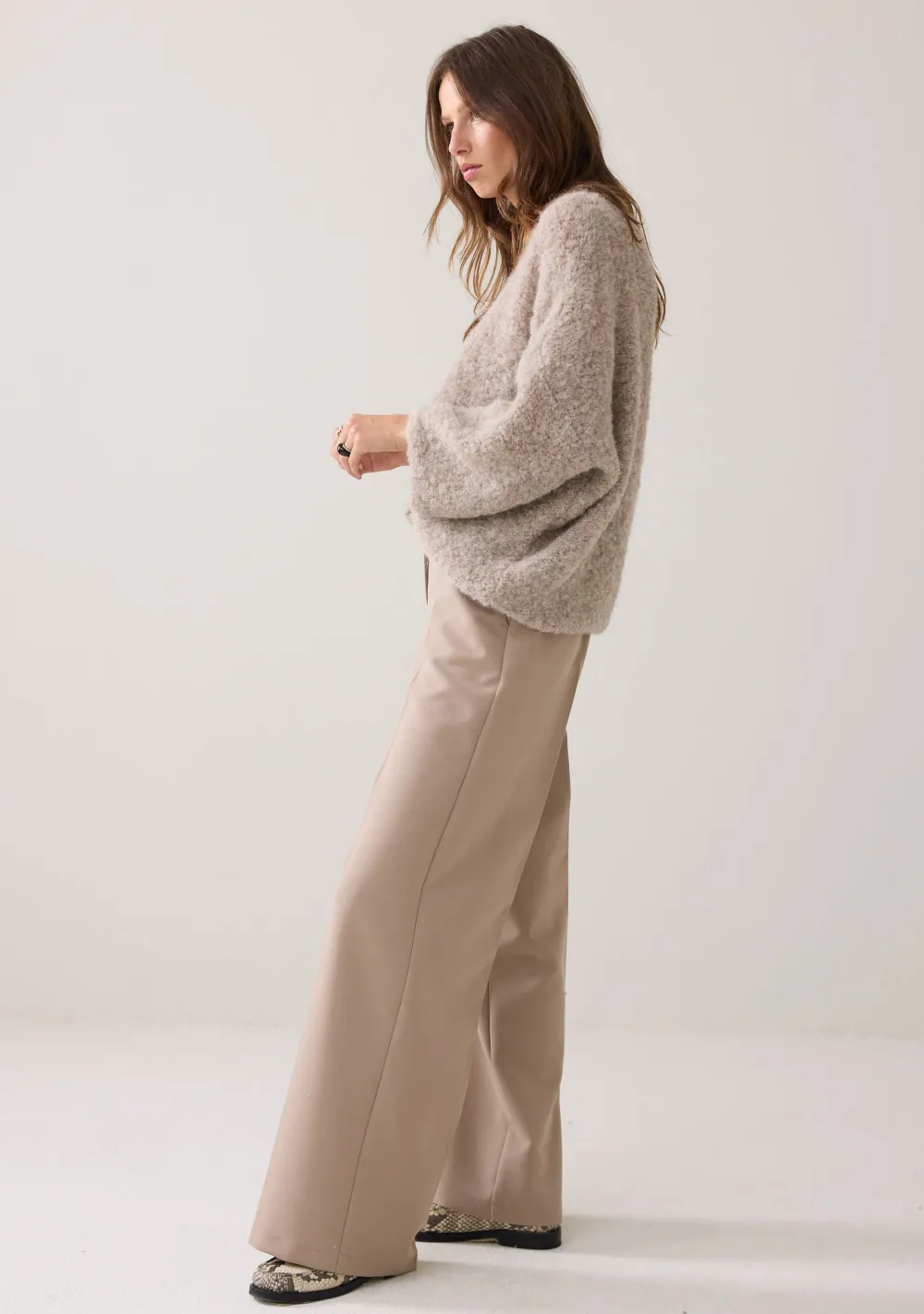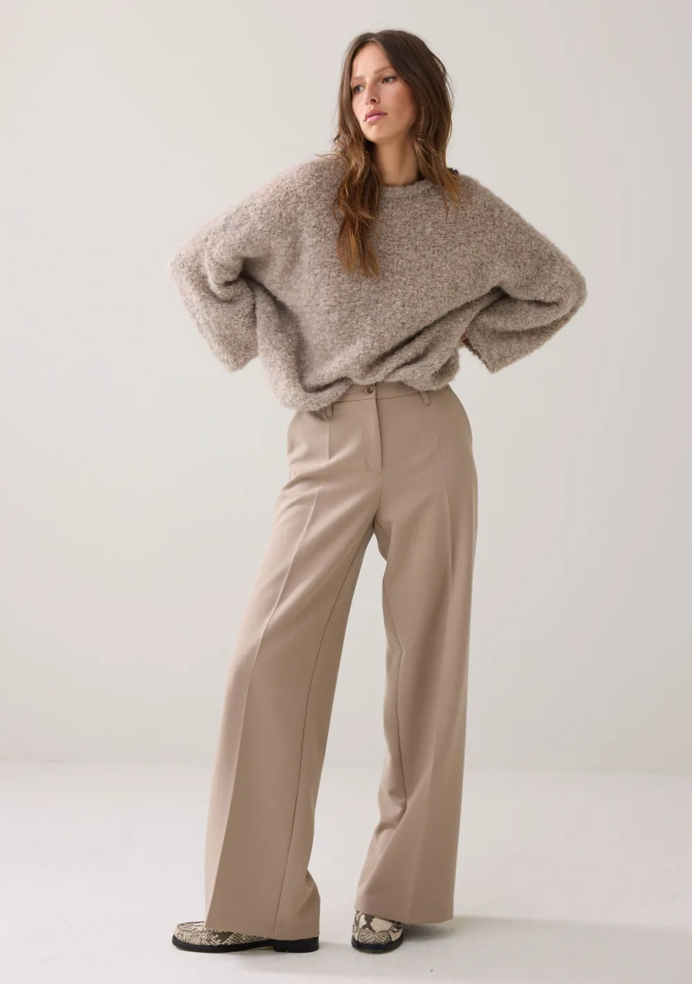 – Het model is 1.76m lang en draagt maat 36
