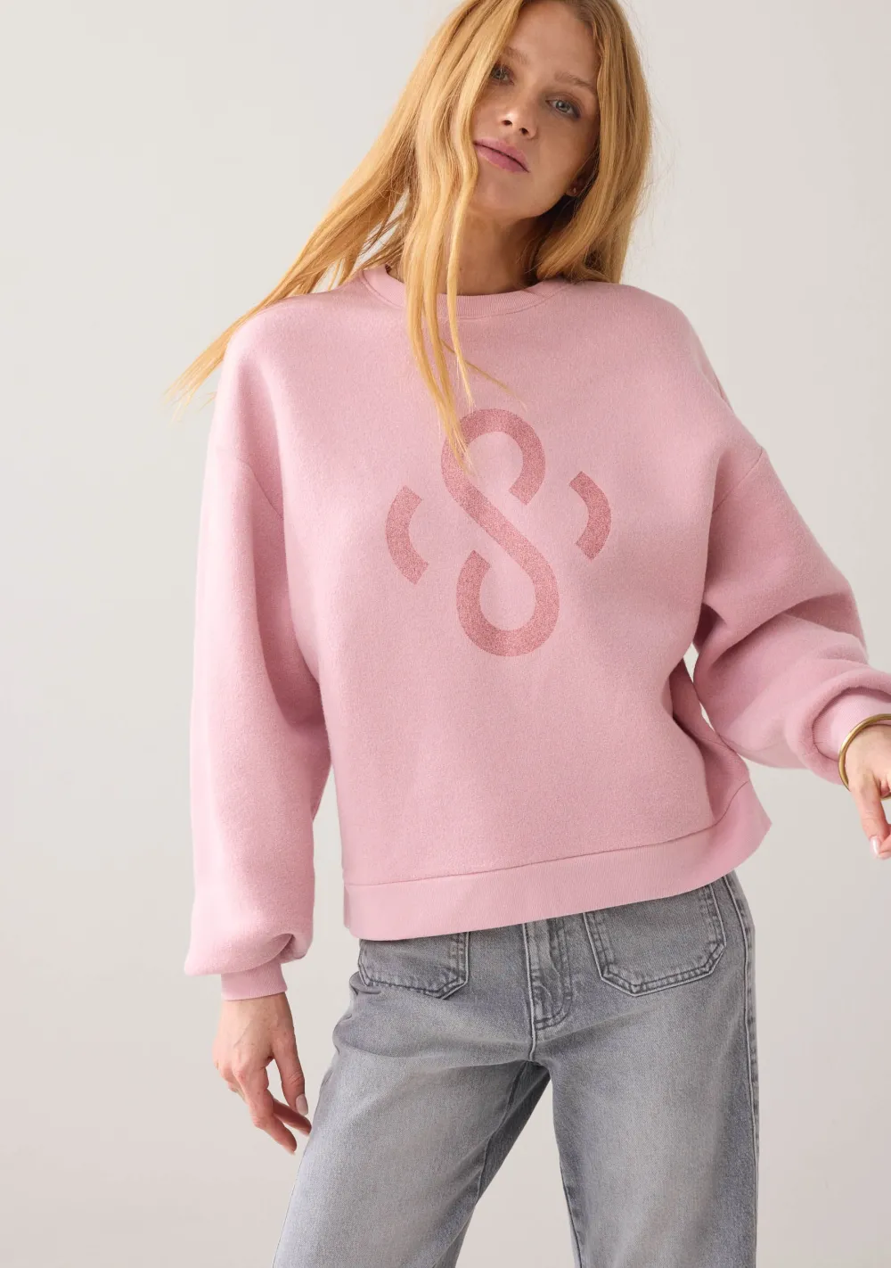 – Het model is 1.77m lang en draagt maat S