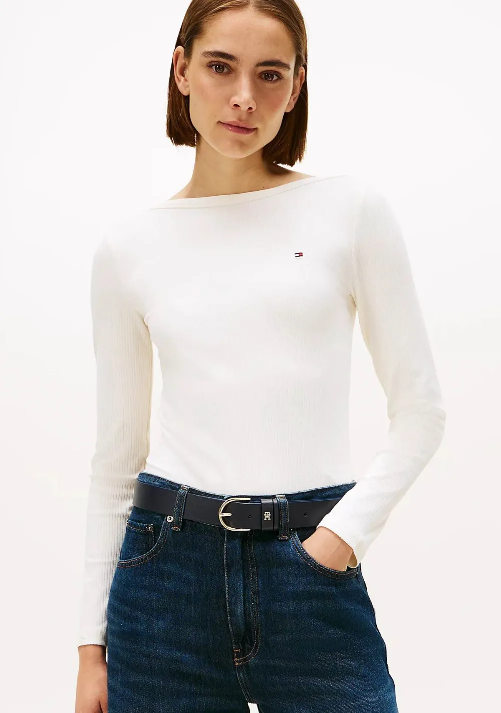 – Getailleerde top met boothals is voorzien van een geborduurd logo detail