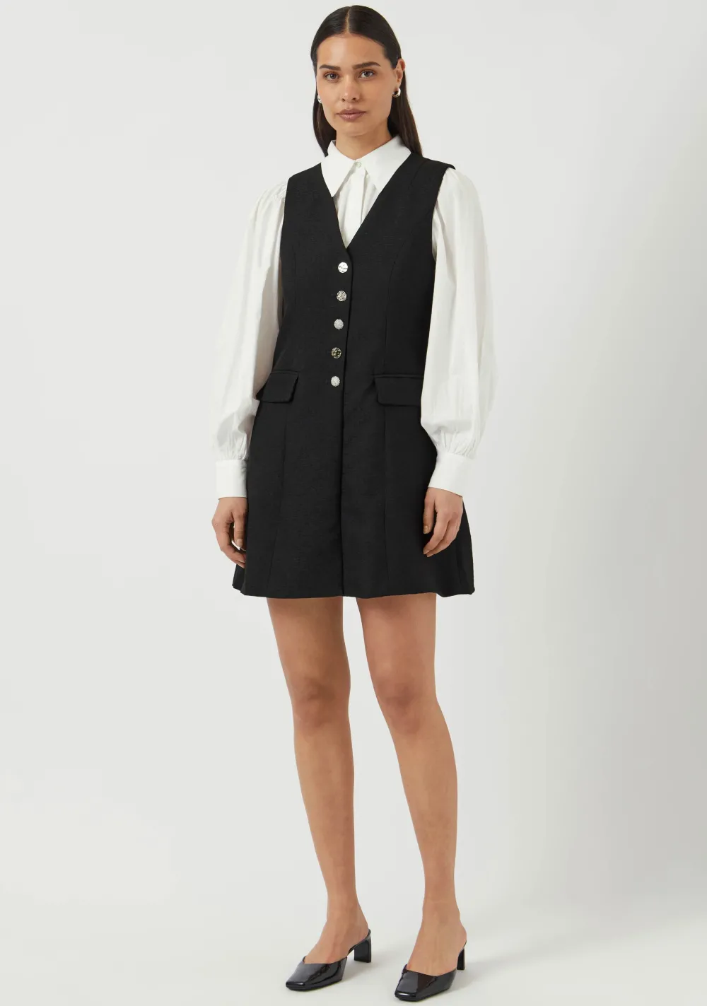 – Het model is 1.76m lang en draagt maat 36
