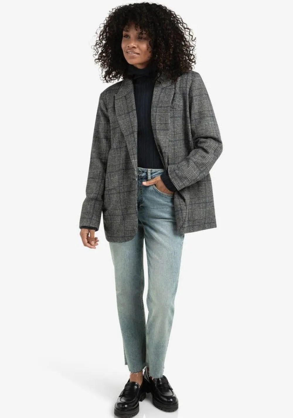 – Het model is 1.76m lang en draagt maat 36