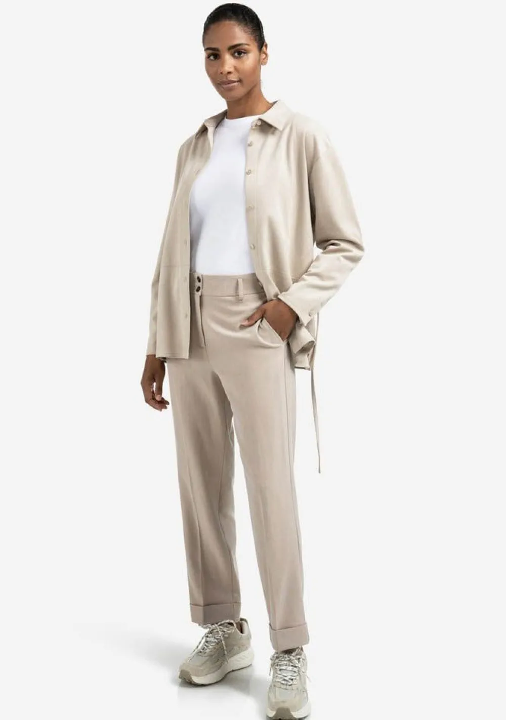 – Het model is 1.76m lang en draagt maat 36