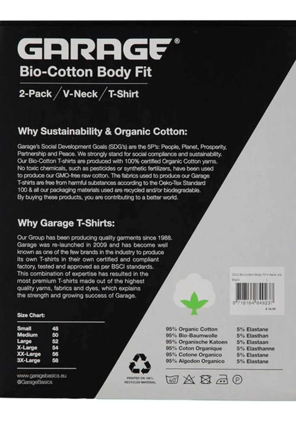 Deze v-hals shirts van Garage zijn gemaakt van 95% katoen en 5% elastaan. Hierdoor hebben deze shirts een hoog draagcomfort. De shirts hebben een body fit waardoor ze bij uitstek geschikt zijn om bijvoorbeeld onder je overhemden te dragen. Verpakt in set van 2 shirts.