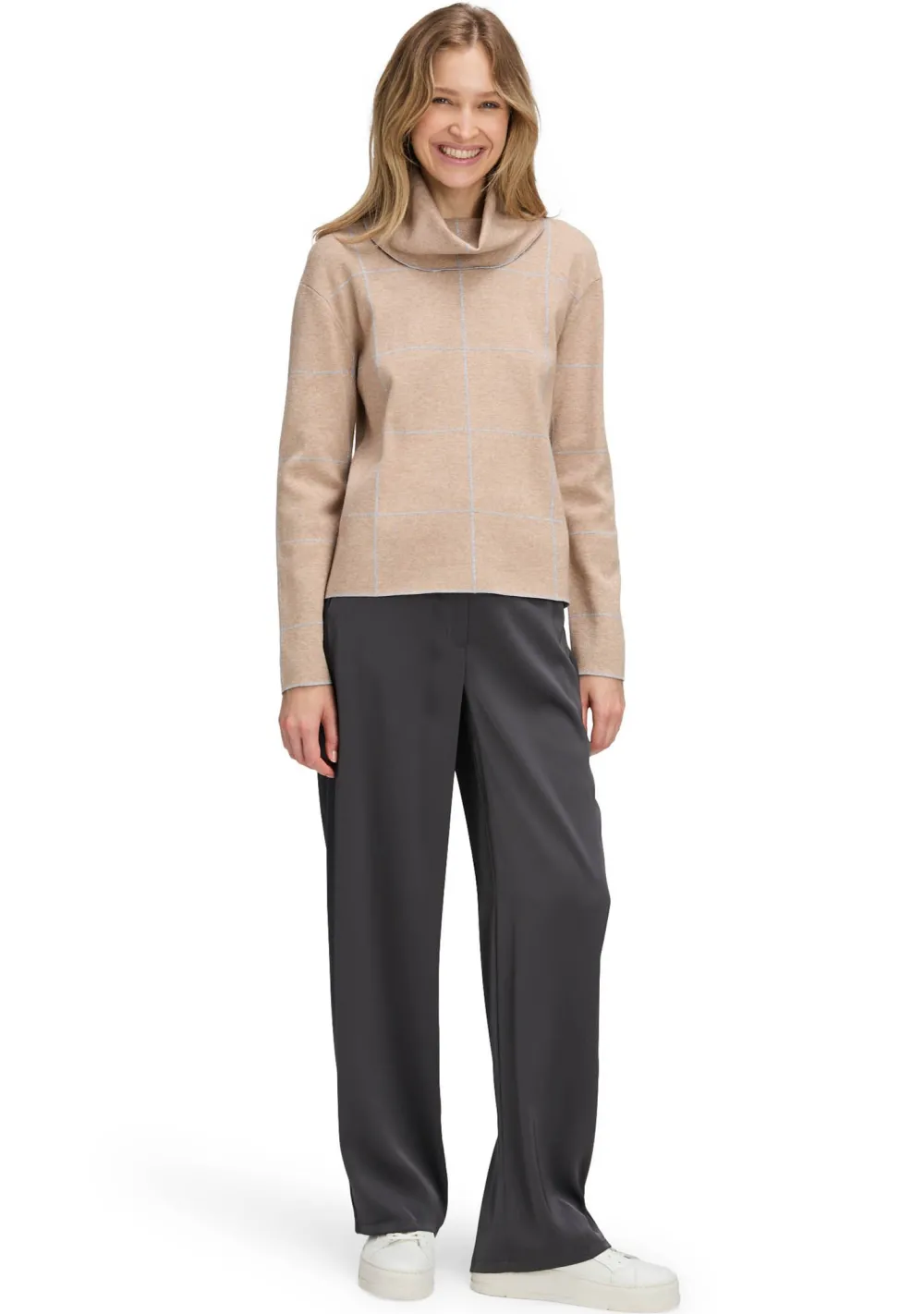– Het model is 1.76m lang en draagt maat 38
