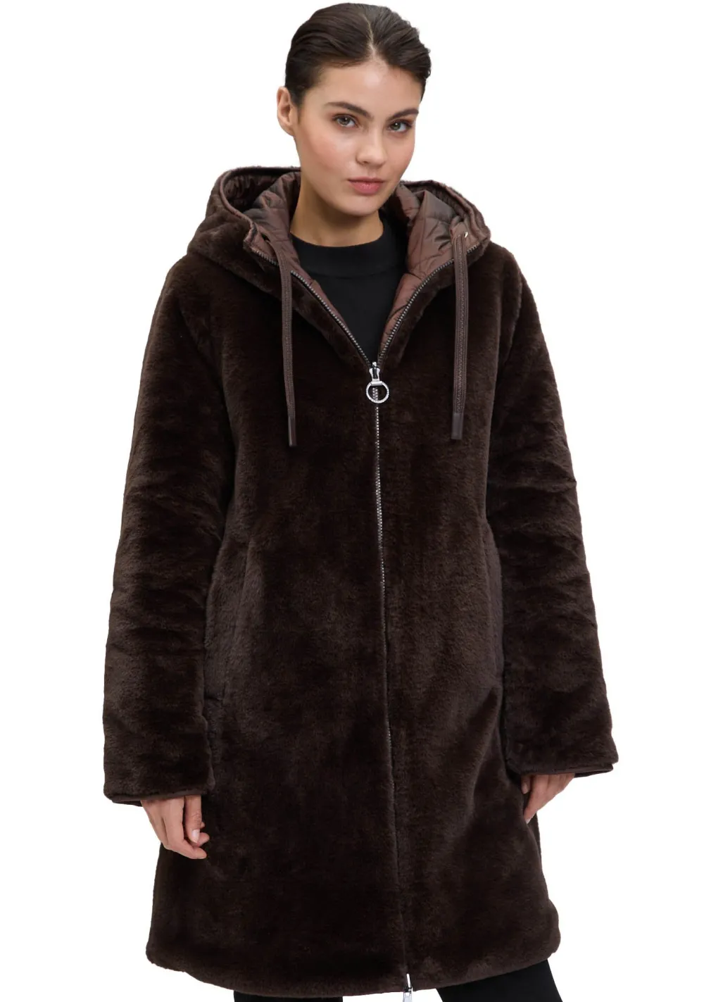 – Het model is 1.76m lang en draagt maat 38