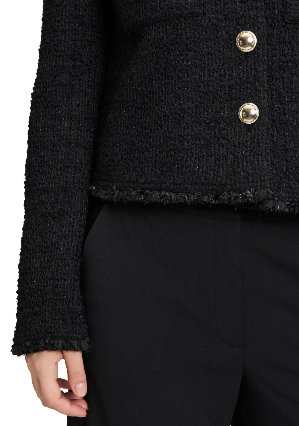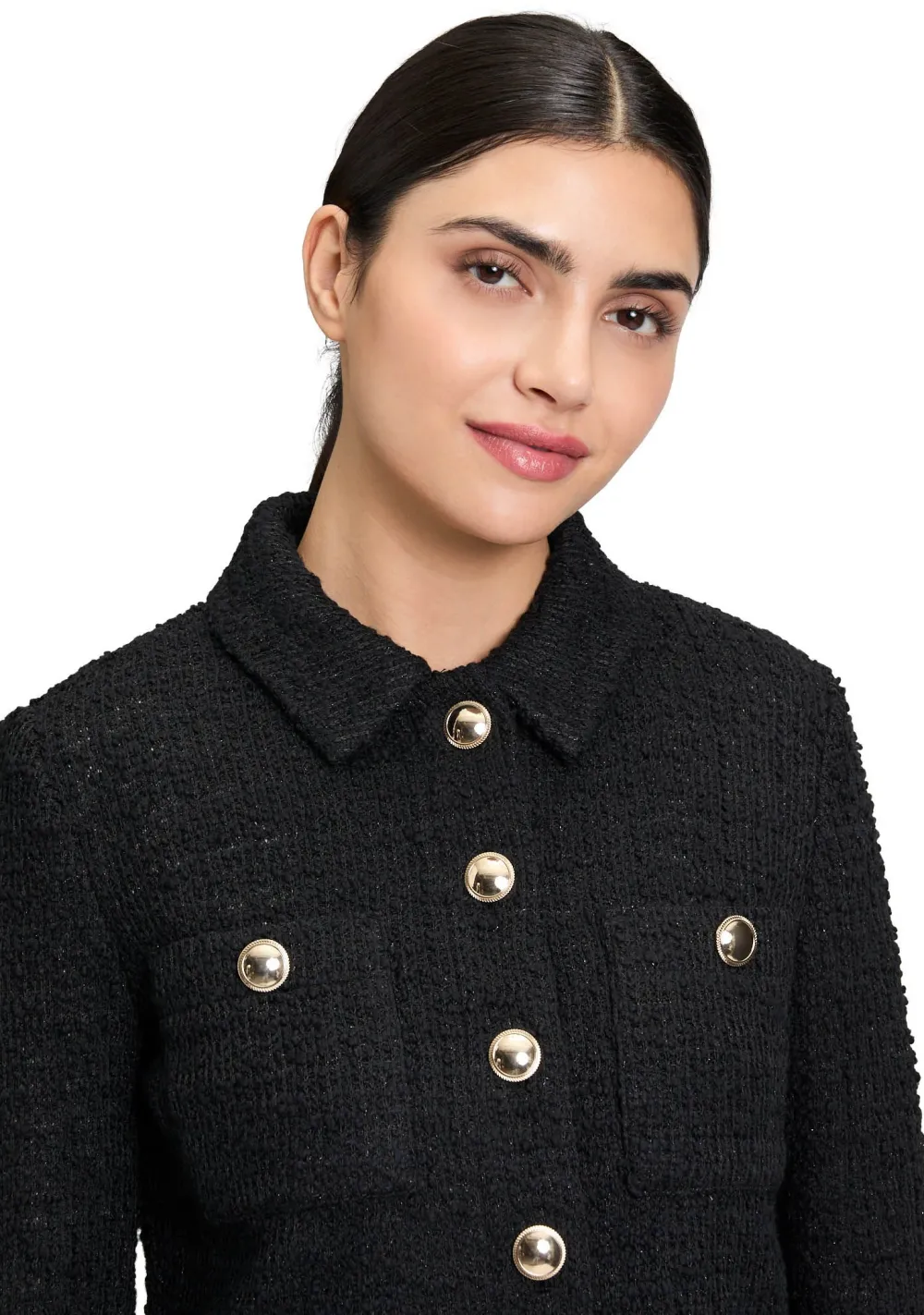 – Het model is 1.76m lang en draagt maat 38