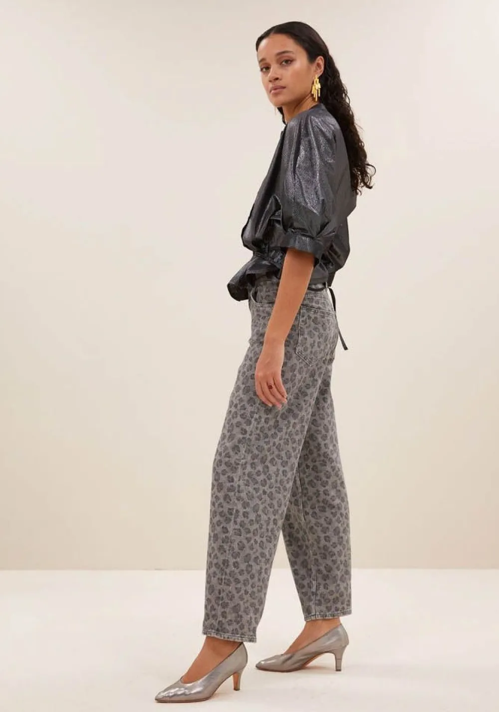 – Het model is 1.75m lang en draagt maat S