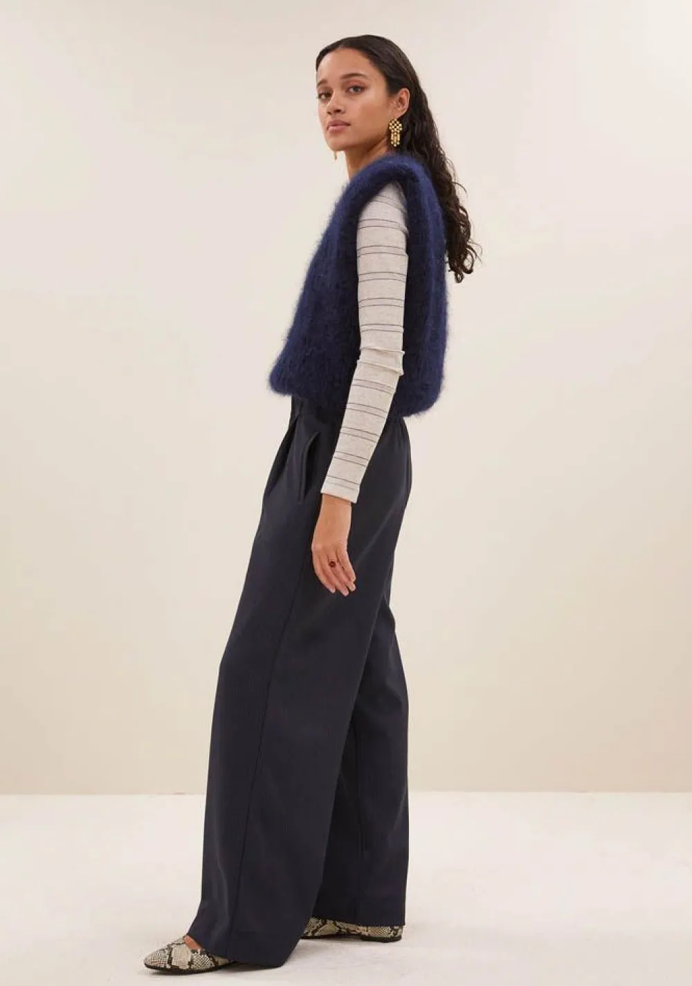 – Het model is 1.78m lang en draagt maat S