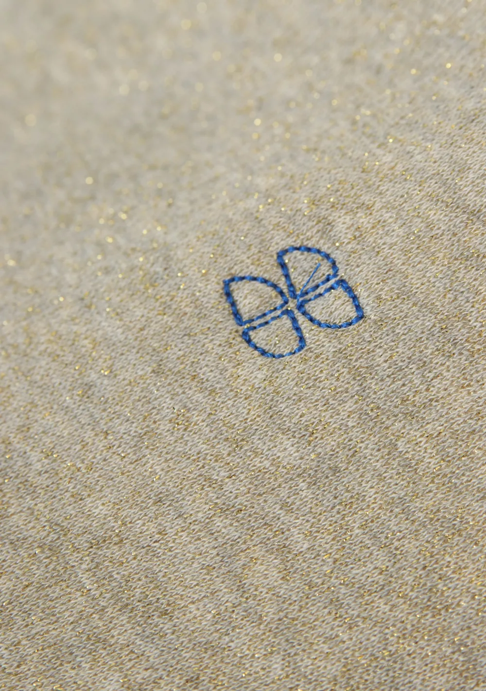 – Bodil sparkle sweater is afgewerkt met een all-over glitter accent. De sweater heeft een elastische boord aan de onderzijde en een oversized fit