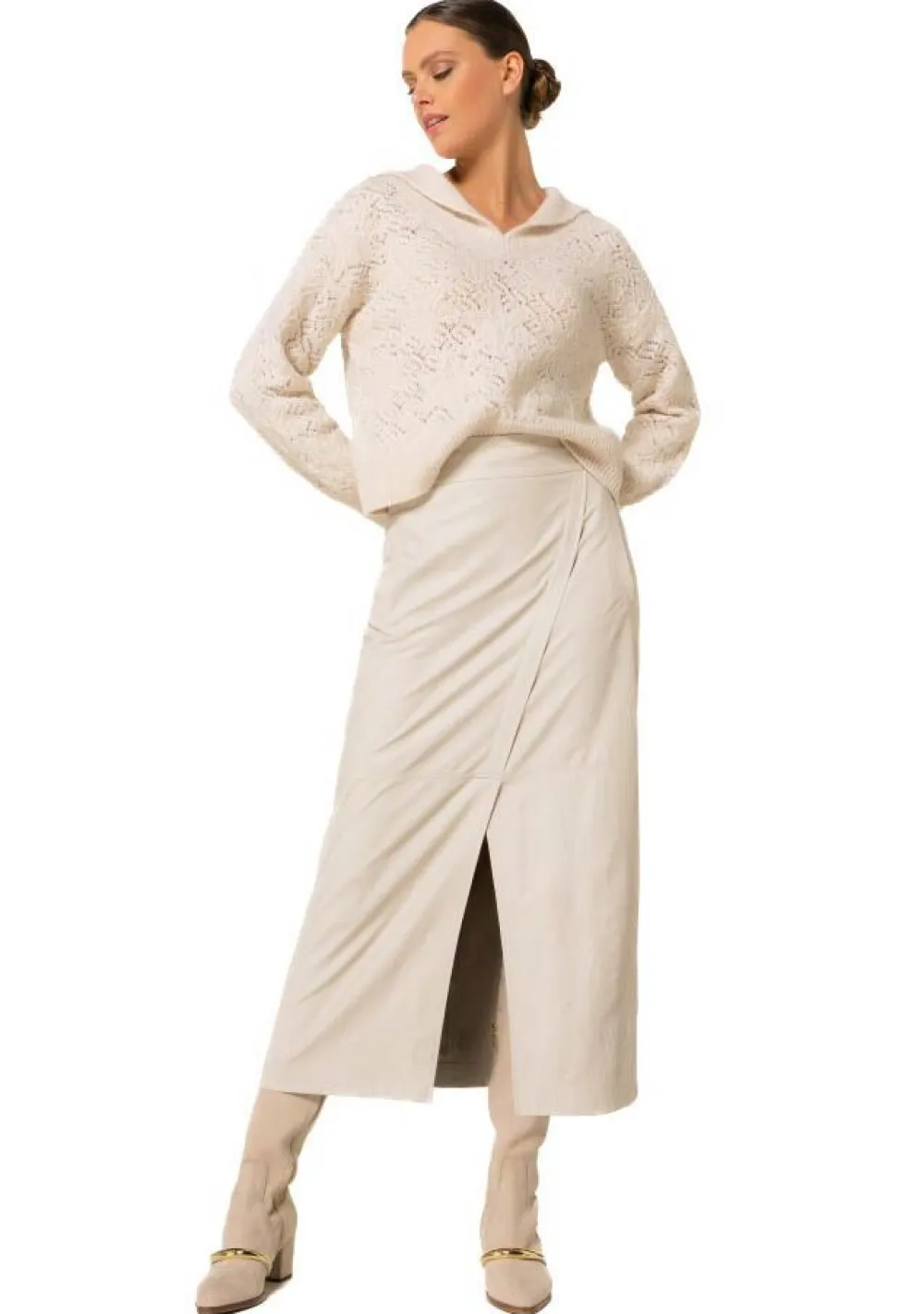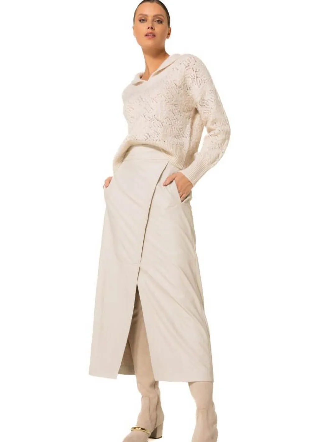 – Het model is 1.76m lang en draagt maat 36